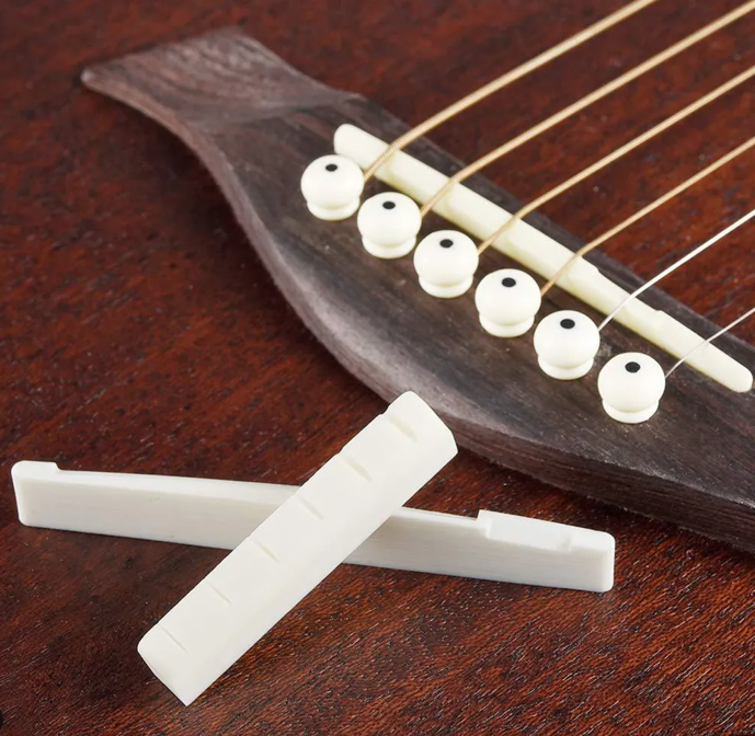 If the saddle or nut gets too low, you will notice it both in the playability and sound of the guitar. Sometimes they are raised slightly to postpone replacement, but to play carefree, we recommend having these parts replaced on time.