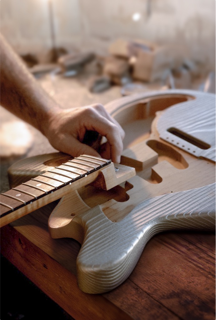 De body-halsverbinding is de belangrijkste verbinding op een gitaar. Hij fungeert als een brug van energie; hij brengt resonantie, sustain en toon over en zorgt tegelijkertijd voor stabiliteit van de gitaar.