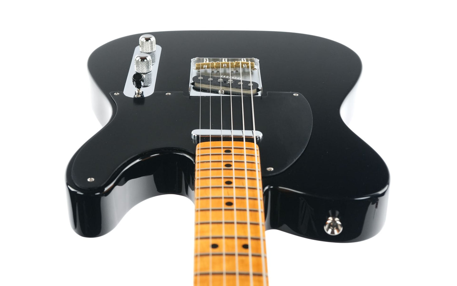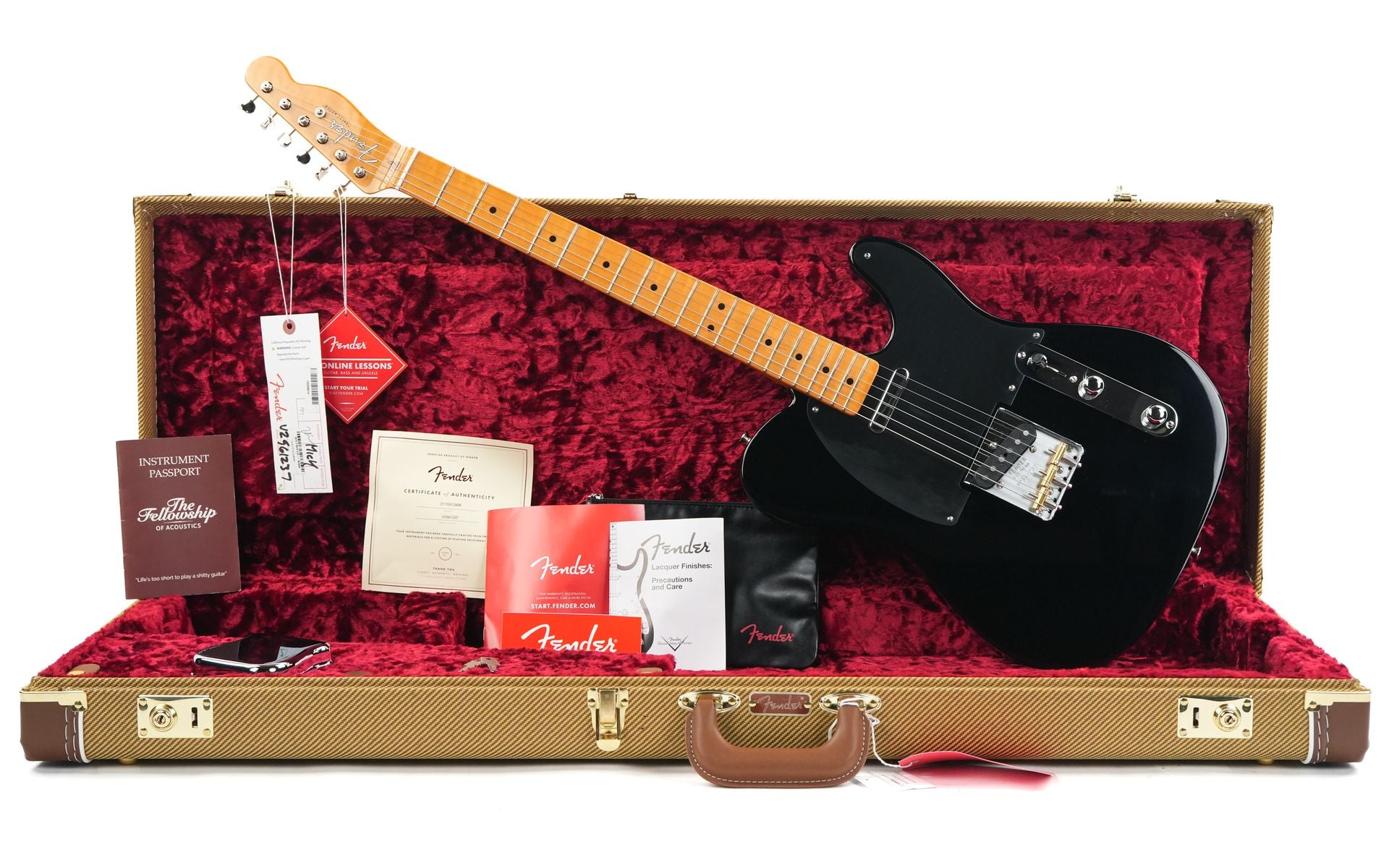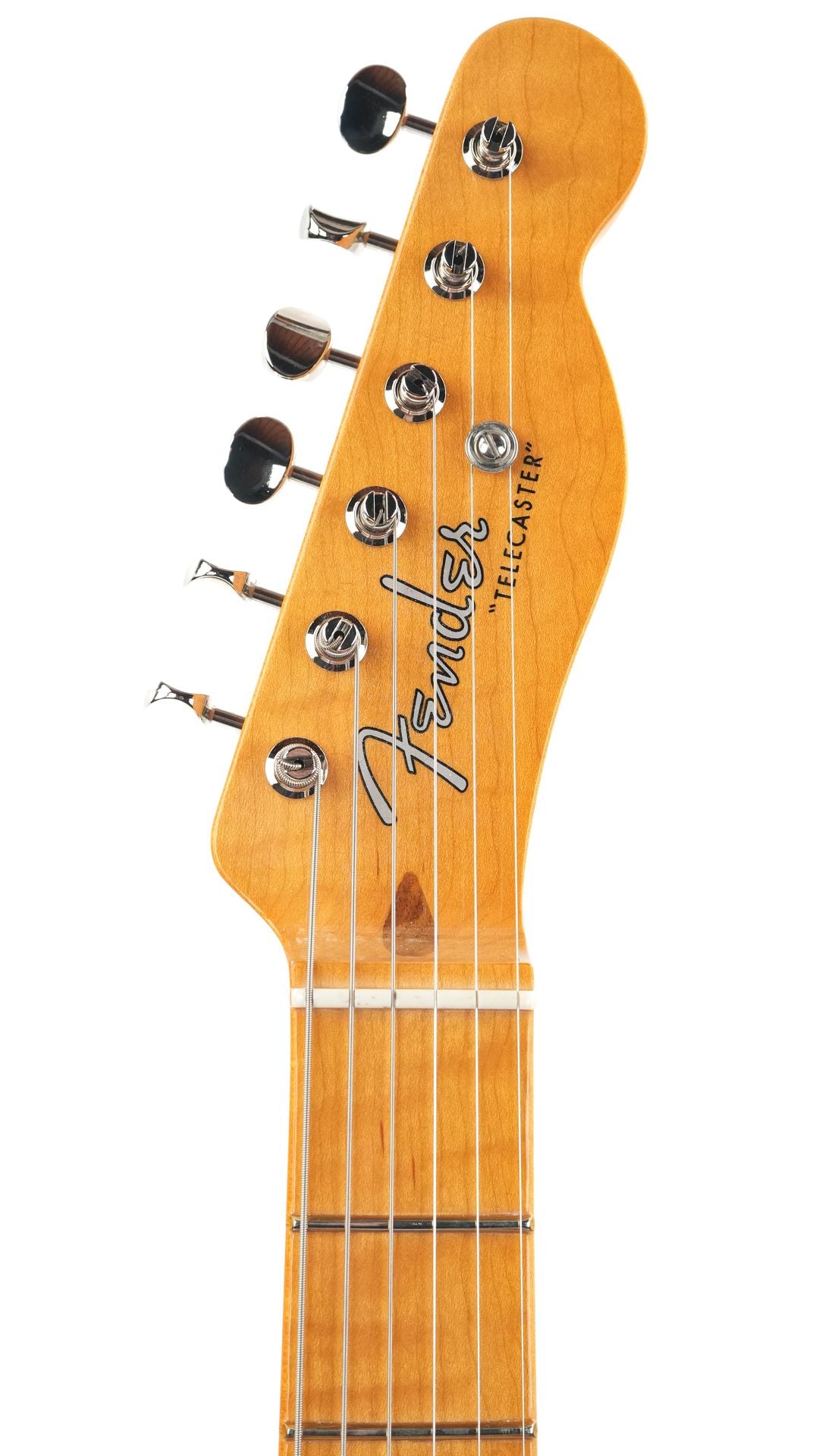 Nur ein Jahr nach der Markteinführung der Broadcaster erhielt Fender eine Unterlassungserklärung von Fred Gretsch Mfg. Co., die das Unternehmen zwang, sein Flaggschiff unter den E-Gitarren umzubenennen. Inspiriert vom rasanten Wachstum und der Reichweite des Fernsehens, rollte 1951 die erste Telecaster mit schwarzem Schlagbrett vom Band, und dieses Modell wird seither ununterbrochen produziert. Täuschend einfach und doch bahnbrechend, machte die Telecaster die E-Gitarre mit massivem Korpus für die breite Masse erschwinglich und inspirierte unzählige Musiker.