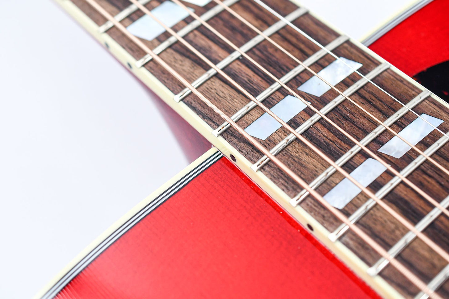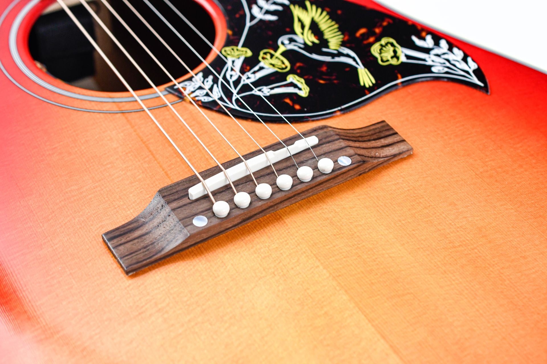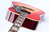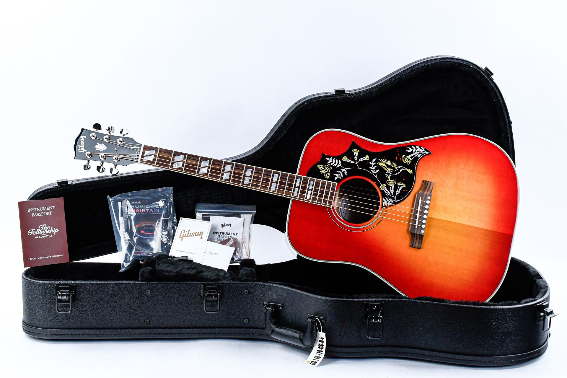 Der Mahagonihals des Hummingbird hat ein angenehmes, abgerundetes Profil und Parallelogramm-Einlagen aus Perlmutt. Zusätzlich zu einem Vintage Cherry Sunburst-Finish verfügt dieser „Vogel“ auch über Grover Rotomatic-Tuner, die kultigen Hummingbird-Grafiken auf dem Schlagbrett und ist mit LR Baggs VTC-Elektronik ausgestattet, sodass er auf der Bühne oder im Studio sofort angeschlossen werden kann. Die Gitarre wird mit einem TFOA-Pass in einem Koffer geliefert.