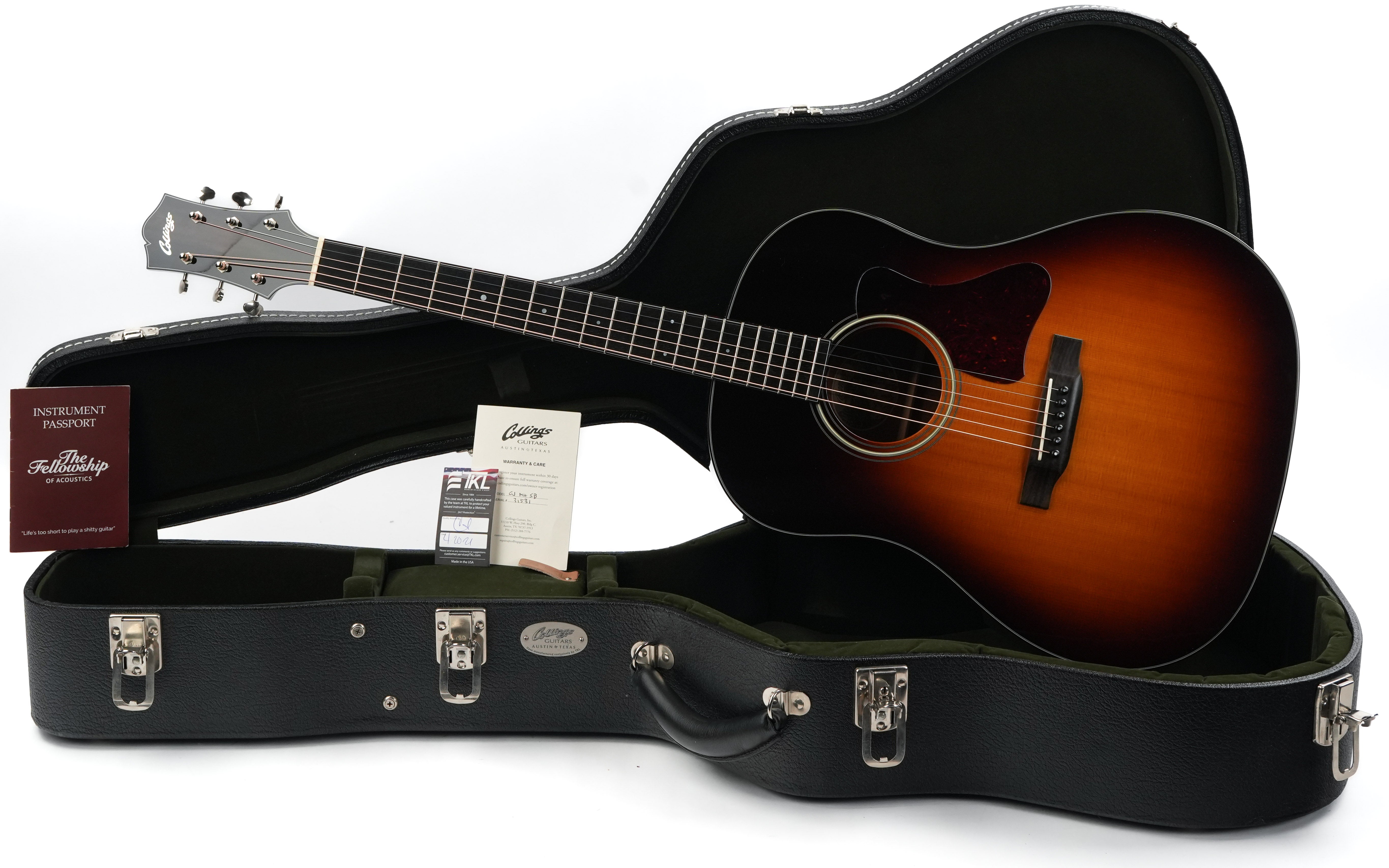 Die CJ, Collings Jumbo, ist Collings' Interpretation eines der absoluten Klassiker der Gitarrenwelt, der Gibson J45. Das Modell mit der abgerundeten Schulter hat sich über die Jahre eine treue Fangemeinde bewahrt, die es für seinen einzigartigen Klang lobt. Obwohl die Gitarre nicht merklich größer als eine Dreadnought ist, zeichnet sich die abgerundete Schulter durch einen tiefen, vollen Klang mit satten Bässen aus, während Höhen und Mitten wunderbar ausgewogen sind.