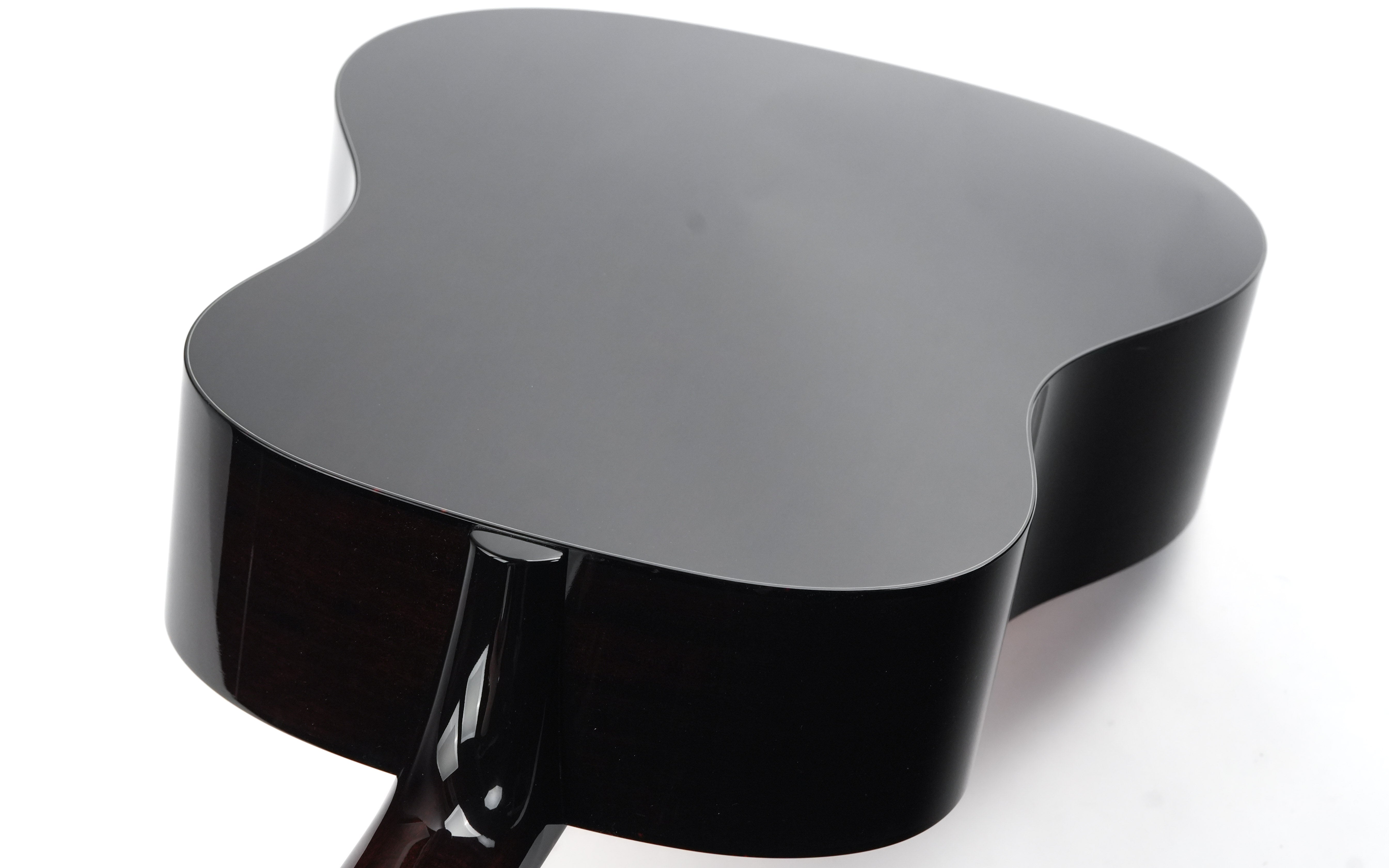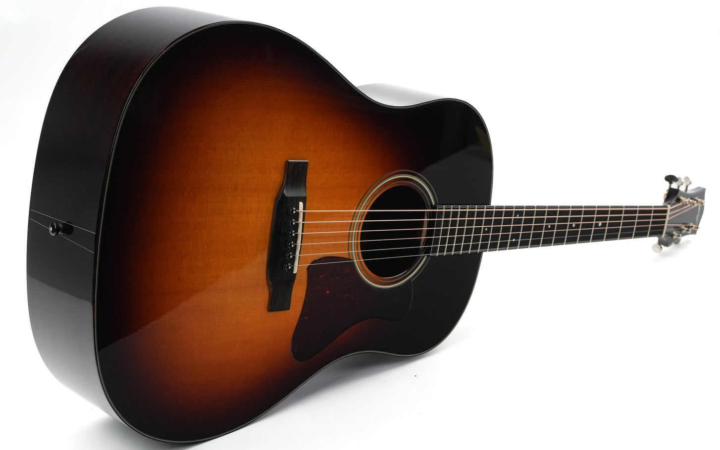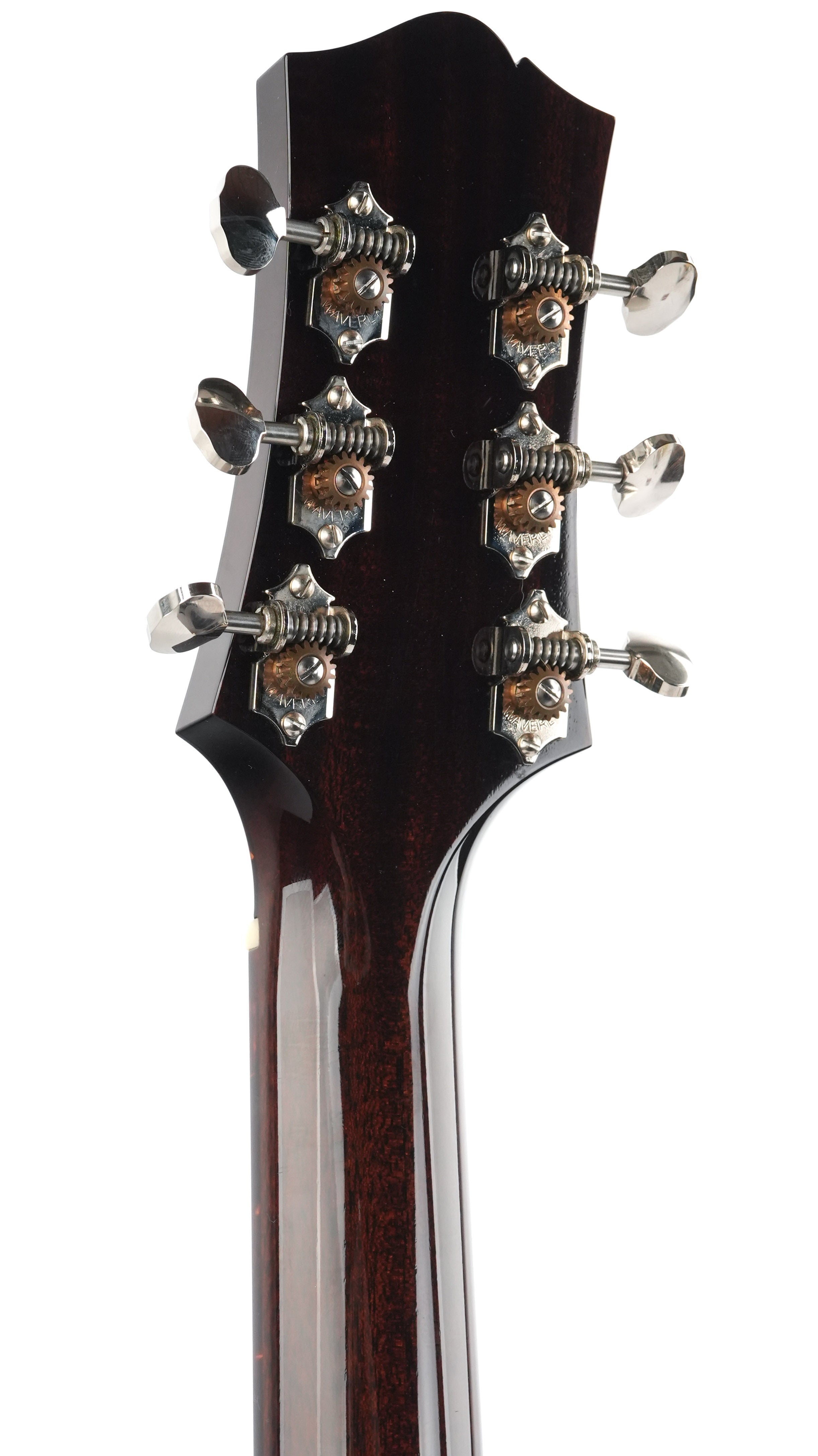 Die Sitka-Fichtendecke ist in ein wunderschönes, dezentes Sunburst-Finish gefasst und wird von einem Korpus aus honduranischem Mahagoni mit Schildpatt-Binding ergänzt. Der Mahagonihals mit seinem robusten C-Profil bietet dank des Compound-Radius über seine gesamte Länge von 25,5 Zoll hohen Spielkomfort. Er ist mit einem Schildpatt-Binding, Perlmutt-Punktinlays und einer Ebenholz-Kopfplatte verziert.