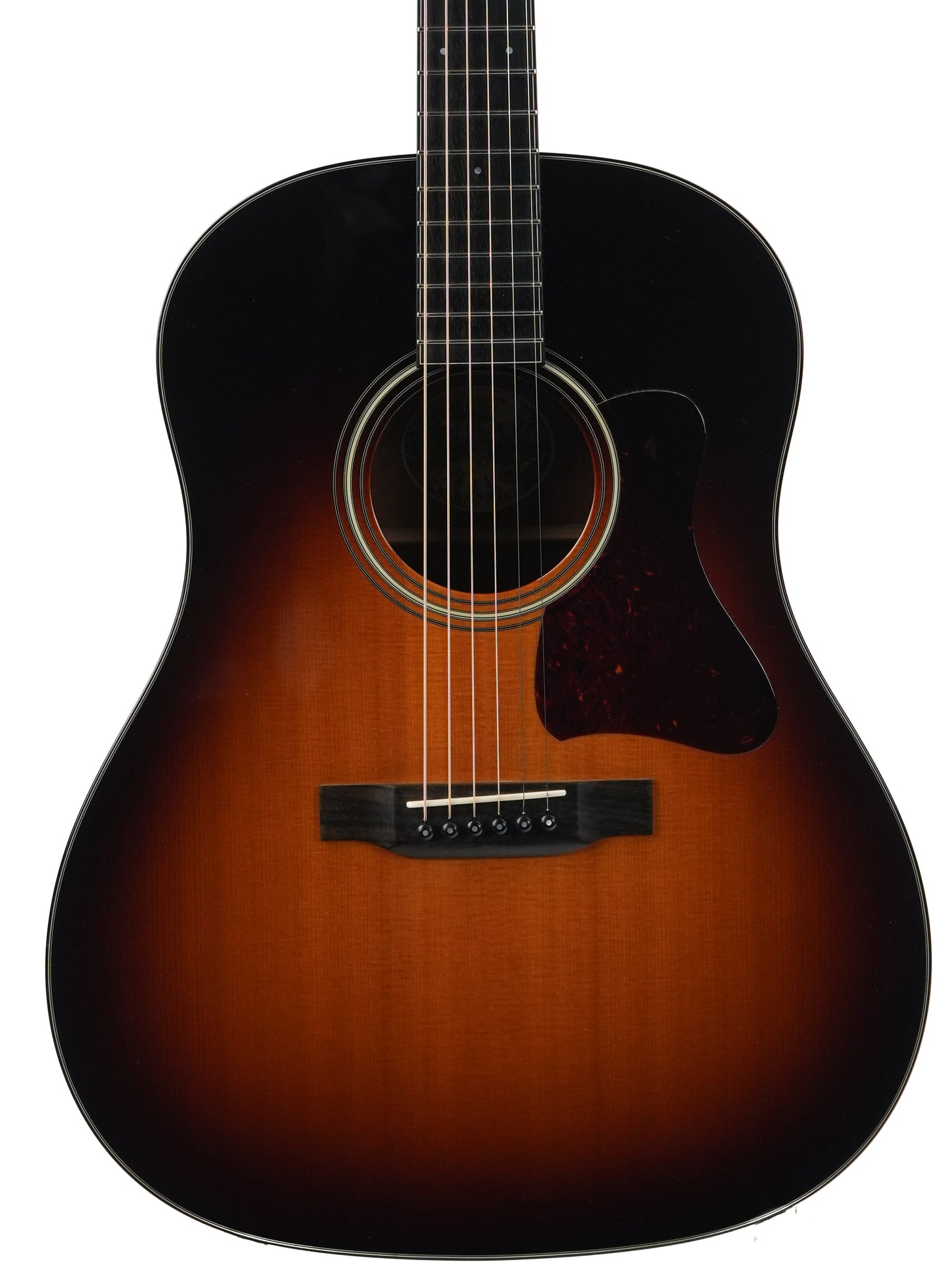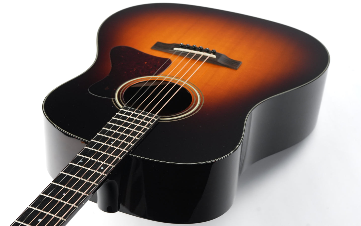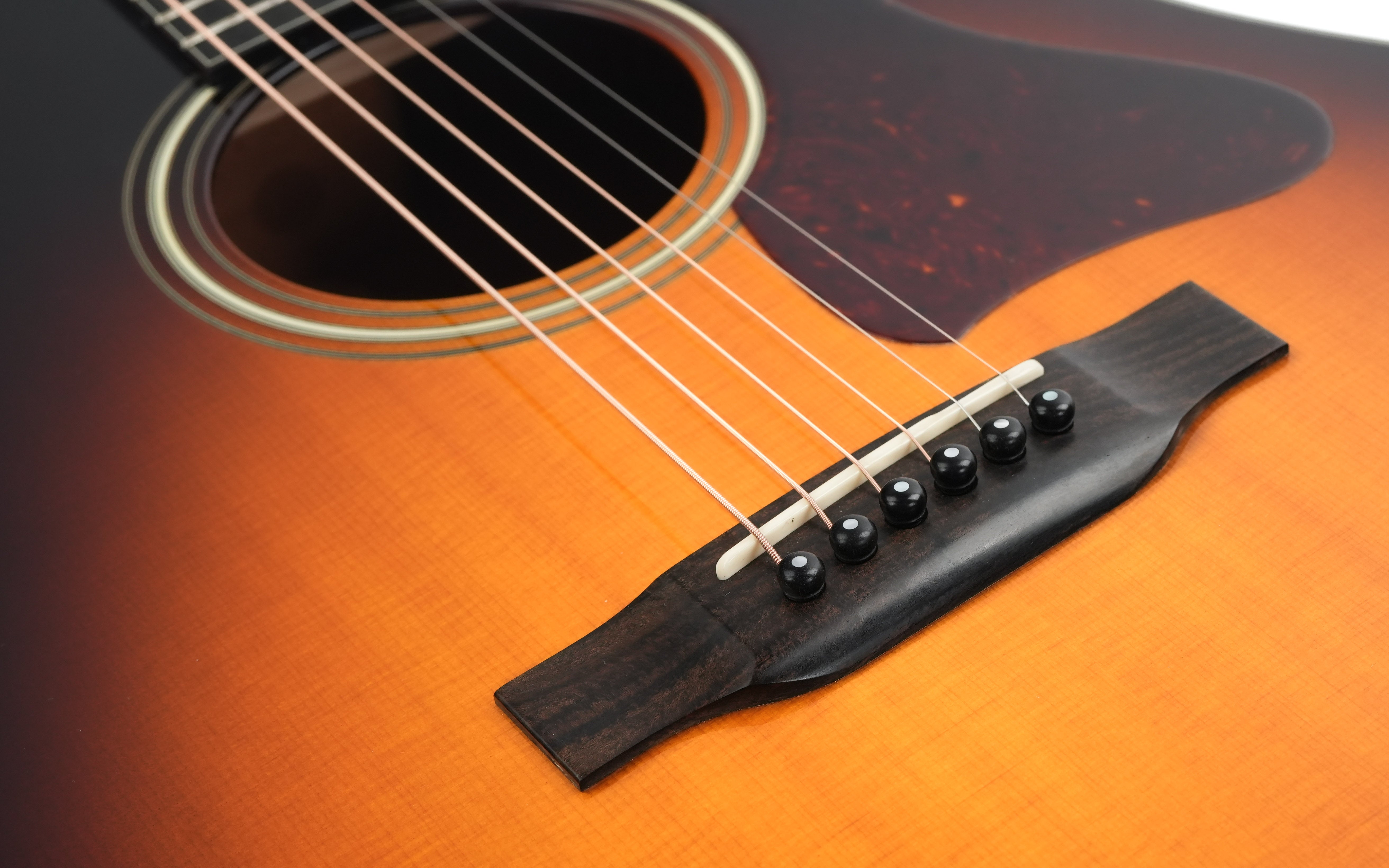 Die Sitka-Fichtendecke ist in ein wunderschönes, dezentes Sunburst-Finish gefasst und wird von einem Korpus aus honduranischem Mahagoni mit Schildpatt-Binding ergänzt. Der Mahagonihals mit seinem robusten C-Profil bietet dank des Compound-Radius über seine gesamte Länge von 25,5 Zoll hohen Spielkomfort. Er ist mit einem Schildpatt-Binding, Perlmutt-Punktinlays und einer Ebenholz-Kopfplatte verziert.