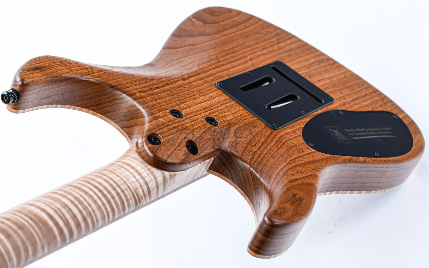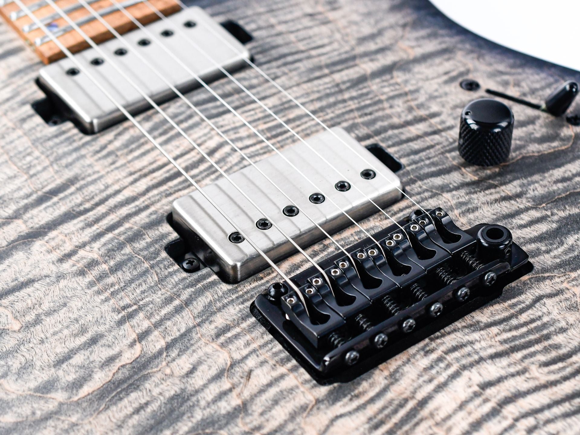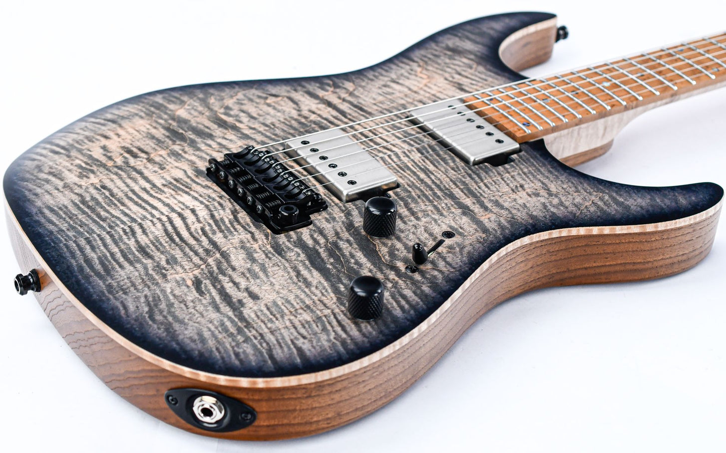 Der Korpus aus Sumpfesche bietet exzellente Resonanz mit einem klaren, artikulierten Klang, der sich perfekt für cleane und übersteuerte Töne eignet. Der Hals aus geflammtem Ahorn mit seinem komfortablen D-Profil besticht nicht nur durch seine ansprechende Optik, sondern auch durch die schnelle Spielbarkeit, die moderne Gitarristen schätzen. Die Mayones Velvetrone Ironside und Solium Tonabnehmer liefern ein breites Klangspektrum – von kristallklaren Clean-Sounds bis hin zu kraftvollen, komprimierten Drives. Das 5-Wege-Schaltsystem ermöglicht den Zugriff auf alle klassischen Superstrat-Positionen, während die Gotoh-Hardware für zuverlässige Stimmstabilität und Langlebigkeit sorgt!