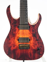 Die Mayones Duvell Elite 7 ist ein Paradebeispiel für das Bekenntnis des Unternehmens zu Qualität. Mit ihrer Bolt-on-Halskonstruktion und ihrem ergonomischen Design ist diese Gitarre auf ultimative Spielbarkeit ausgelegt. Ihr Korpus aus Khaya-Mahagoni ist mit einer atemberaubenden Kappe aus gewelltem Pappelholz in einem auffälligen Lava-Burst-Finish versehen, ergänzt durch ein geschabtes Binding für zusätzliche Eleganz.