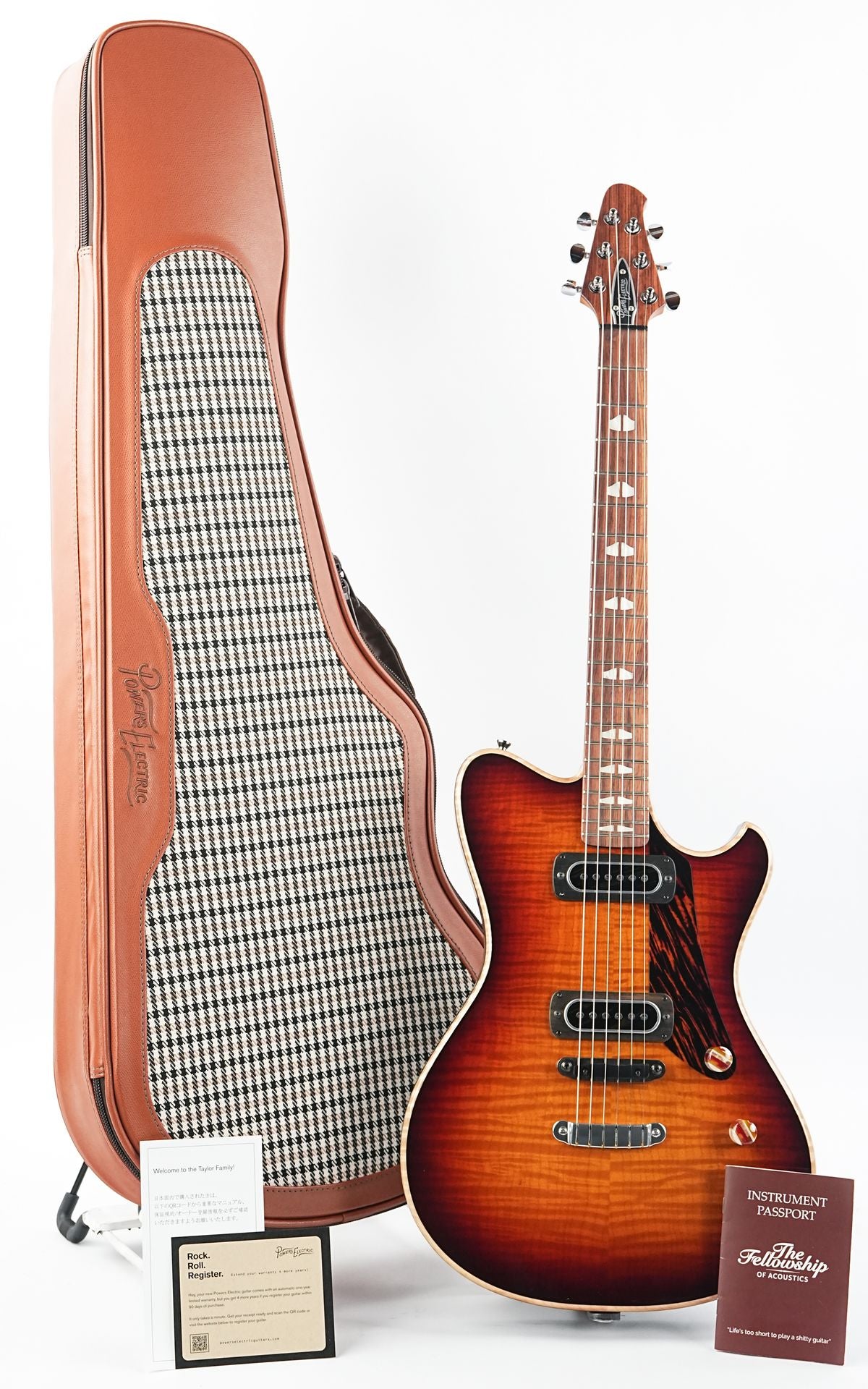 Die Gitarre wird in einem wunderschönen weichen Lederetui geliefert, das das Retro-Feeling von Powers Electric vervollständigt!