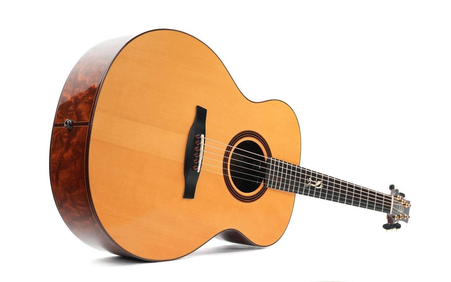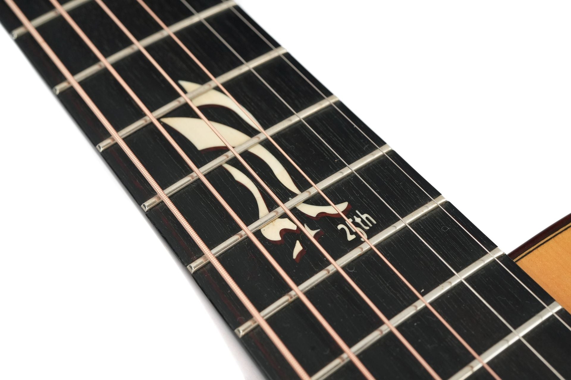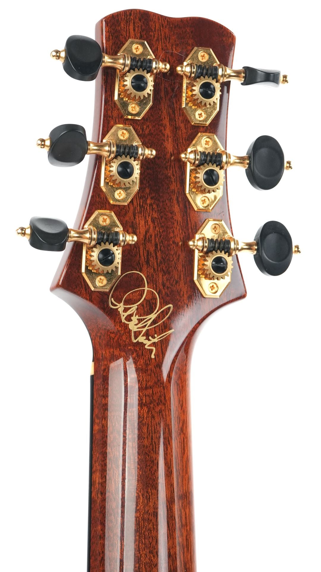 Im Jahr 2010 feierte Paul Reed Smith das 25-jährige Jubiläum seines Unternehmens mit einer limitierten Serie von Tonare Grand-Gitarren aus diesem legendären Holz. Diese Private Stock-Version von 2014 setzt mit ihrer AAAA-zertifizierten, thermisch behandelten Adirondack-Fichtendecke und der Handwerkskunst von Paul Myles, der für die individuellen Intarsien verantwortlich war, neue Maßstäbe. Die Kombination aus Schlangenholzbinding, Ebenholzgriffbrett und 25-Jahre-Jubiläumsintarsie macht sie zu einem optischen Meisterwerk, das die Qualität des Holzes perfekt ergänzt.