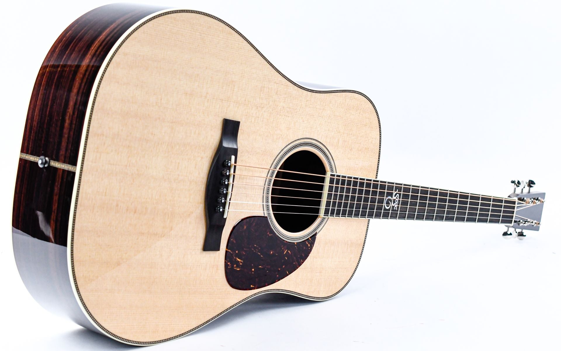 Richard Hoover von SCGC und Tony Rice haben jahrelang bei der Herstellung dessen zusammengearbeitet, was als eine der besten zeitgenössischen Bluegrass-Gitarren bekannt ist. Das Tony Rice Professional Model wurde weiter verfeinert, um dieselben Spezifikationen wie Tonys persönliche Gitarre zu bieten. Qualitätspalisander, wie sie in den besten Vintage-Instrumenten zu sehen ist, und Sitka Fichtendecke sind die Materialien, die mühelos den großartigen Dreadnought-Klang erzeugen.