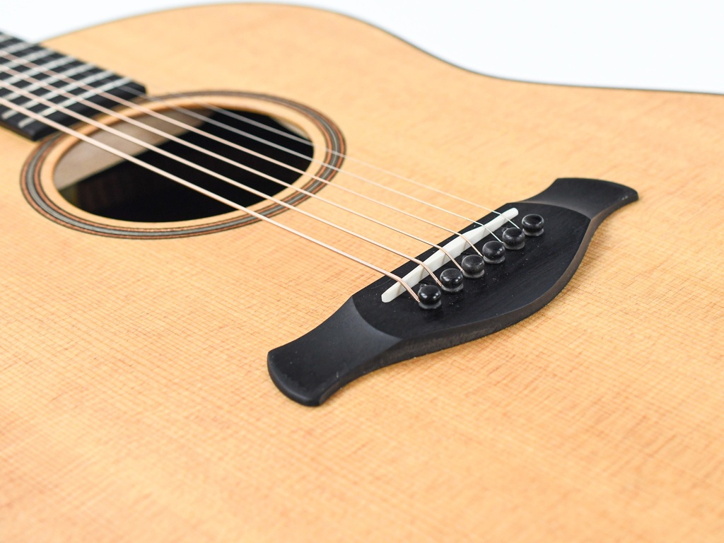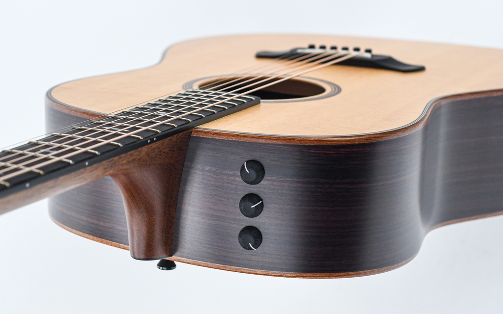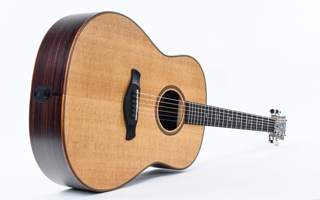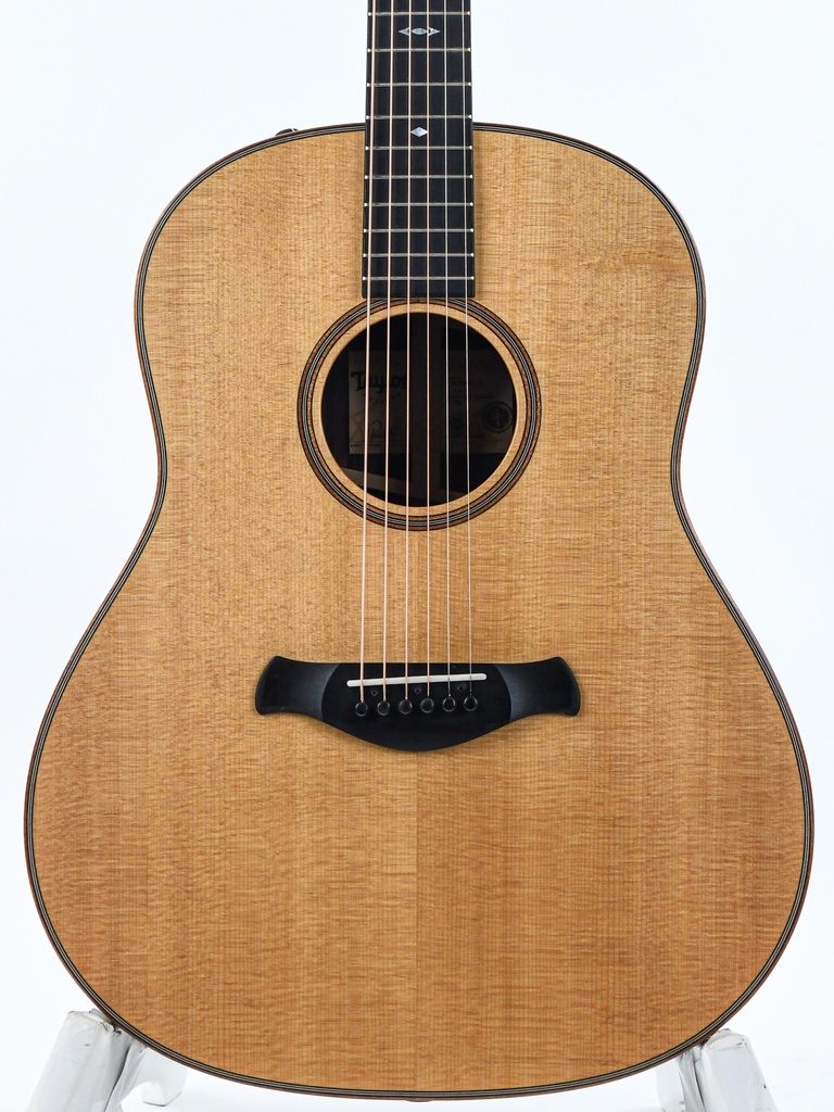 De slope-shoulder vorm, met Taylor's bekroonde V-Class bracing, produceert een warme, doorgewinterde akoestische klank waarin individuele noten elkaar overlappen en soepel in elkaar overlopen, terwijl de low-end power die gebruikelijk is bij dreadnoughts hier meer helderheid biedt. Samen met de harmonische complexiteit van palissander en het ingespeelde geluid van het getorrificeerde sparren bovenblad, kunnen spelers van top tot teen een rijk, luxueus klankkarakter verwachten.