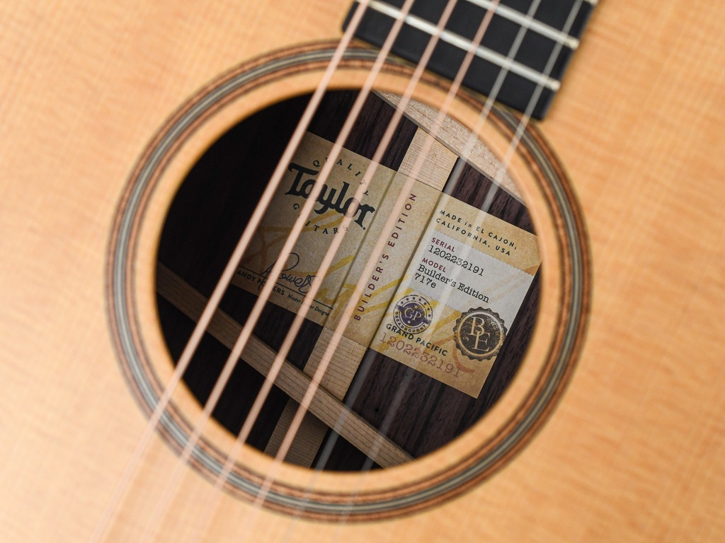 De Builder's Edition 717e maakt deel uit van Taylor's inaugurele klasse van Grand Pacific-gitaren en bouwt voort op een lange traditie van palissander/sparren-dreadnoughts, maar betreedt nieuwe wegen met een geheel nieuw Taylor-geluid.