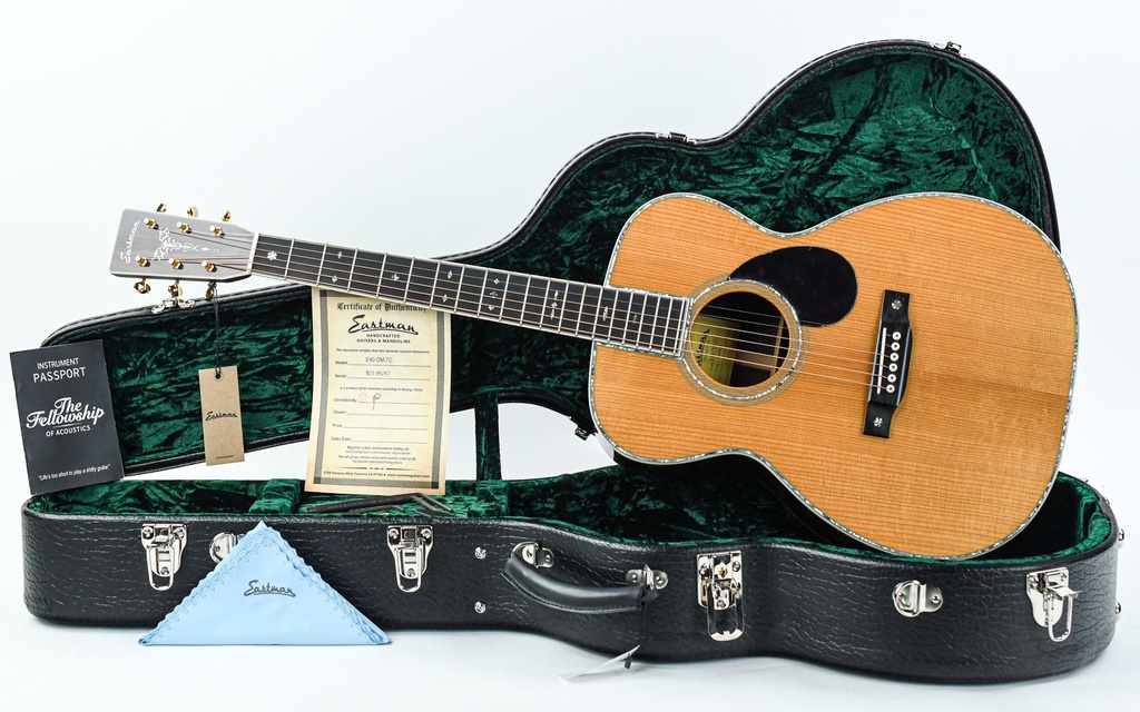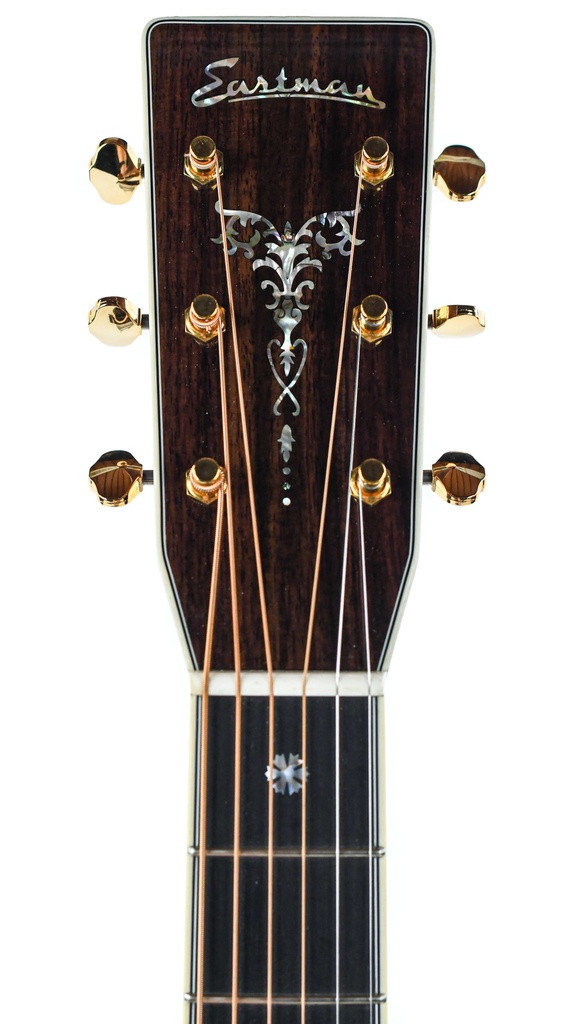 De Eastman E40OM combineert een prachtige palissander klankkast met een Adirondack bovenblad en fraaie abalone inleg op het bovenblad, rondom het klankgat en op de kopplaat. OM's zijn uitgesproken instrumenten, en zeer comfortabel dankzij de geringe diepte van de body. Eastman heeft een creatieve interpretatie gemaakt van deze gitaar door een mensuur van 24.9 inch te gebruiken.Â