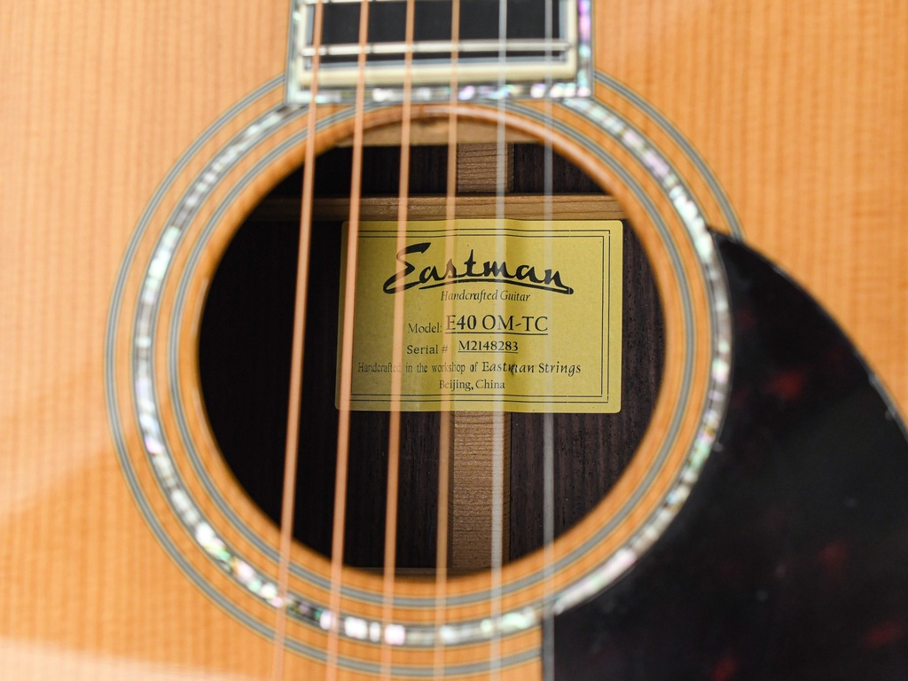 This Eastman E40OM combines stunning solid rosewood back and sides with an Adirondack spruce top and beautiful abalone inlays on the top, rosette, fretboard and headstock.