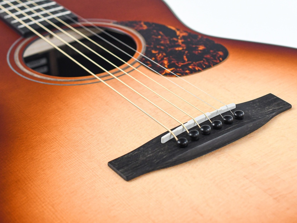 De prachtige AA Indisch palissander achter- en zijkanten, met het AA Sitka sparren bovenblad, zorgen voor een uitstekende klank en uitstraling. Omdat de brug, de brugpennen, de toets en de kop van ebbenhout zijn, komen de snaren voornamelijk in contact met dit karakteristieke toonhout.