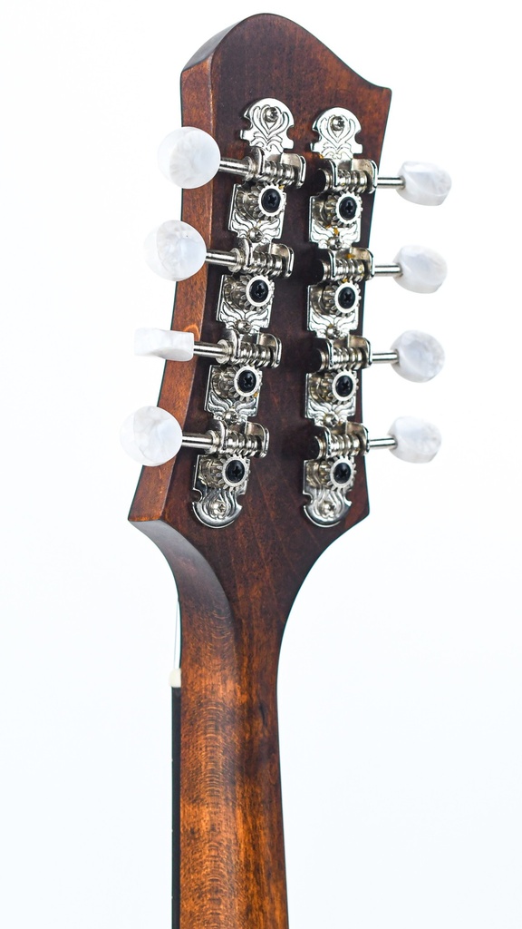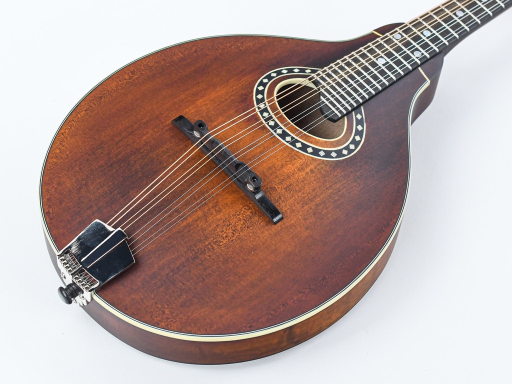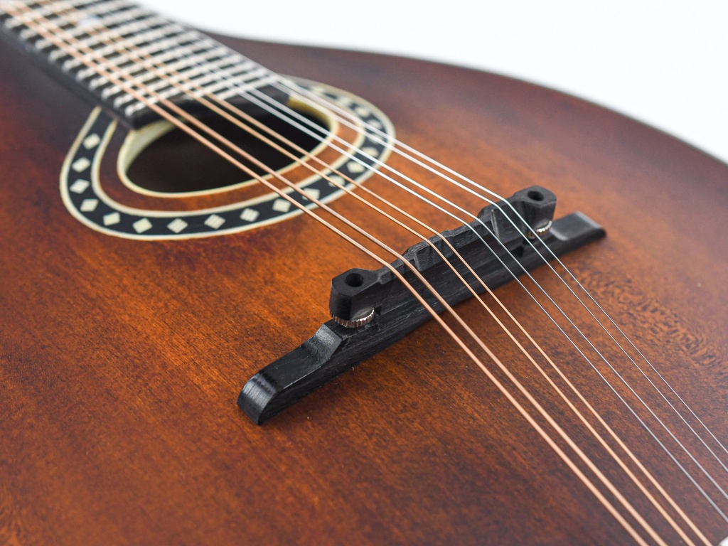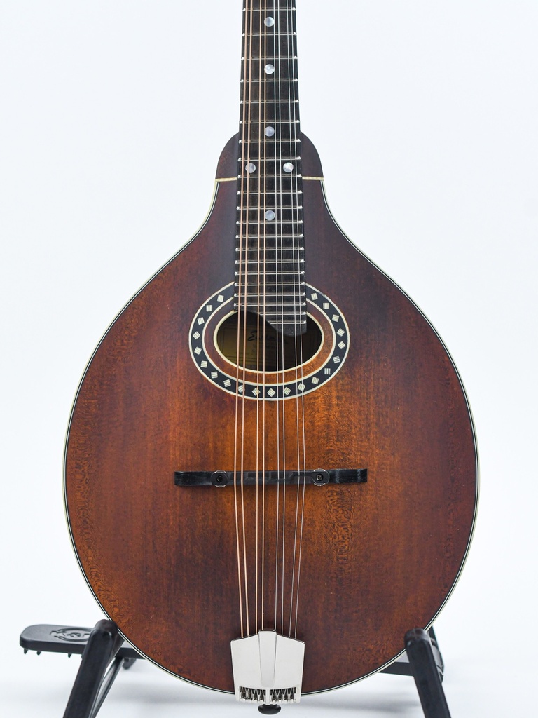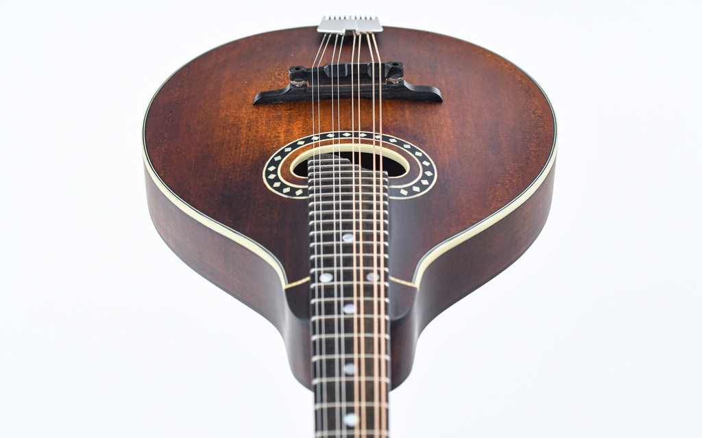 Jedes Instrument wird in traditioneller Handarbeit aus hochwertigen Materialien und nach alter Handwerkskunst gefertigt. Massive Fichtendecke, massiver Ahornkorpus mit Ebenholzgriffbrett und verstellbarem Ebenholzsteg. A-förmiger Korpus mit ovalem Schallloch für einen vollen, warmen Klang und hervorragende Projektion.