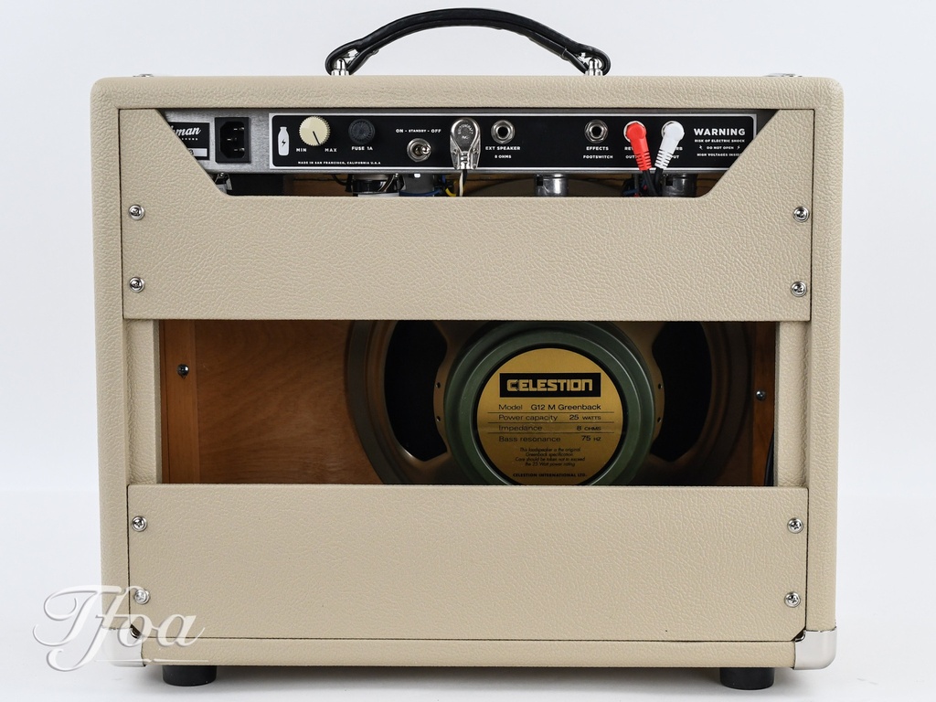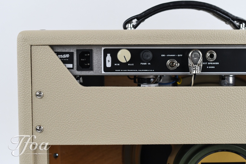 The power section of this amplifier consists of a single 6V6 power tube biased to class A. The front end is similar to the Creamer, with extended headroom reverb and tremolo. The amplifier is hand wired onto a turret board with Mercury Magnetics and Jupiter capacitors are standard equipment.