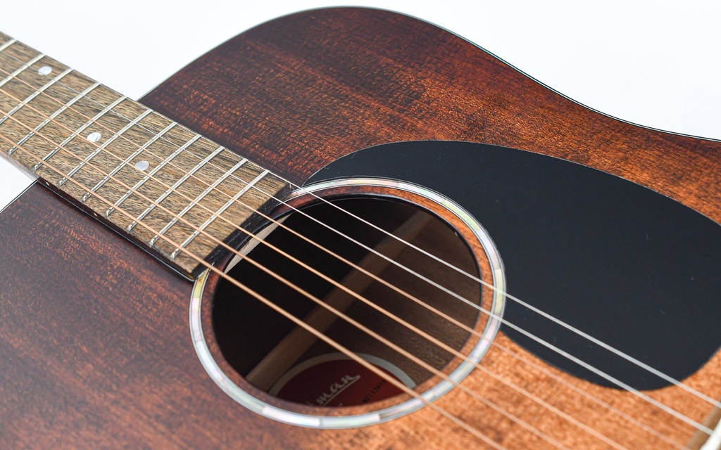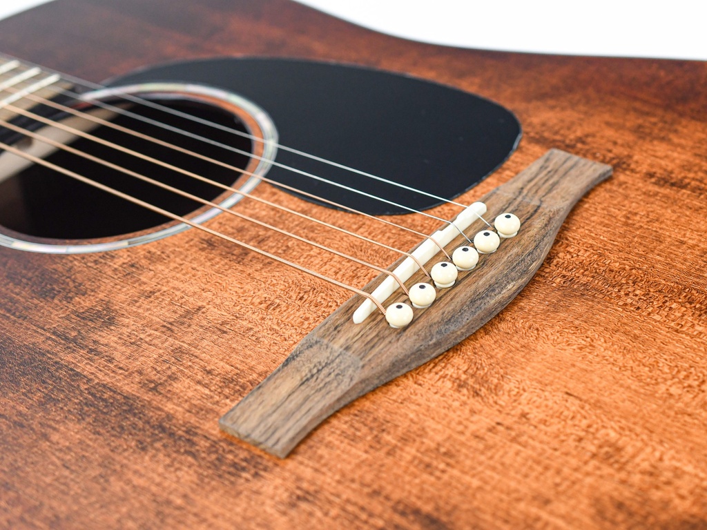 This PCH1-D contains a dreadnought body shape made of laminated sapele paired with a fully solid spruce top. The sapele neck is attached by means of a dovetail joint that creates the traditional tone Martin started a century ago. As a dreadnought, this guitar is a phenomenal strummer and flatpicker.
