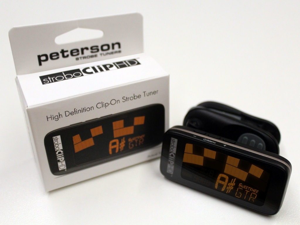 The Peterson StroboClip HD™ (SC-HD) has the same tenth-of-a-cent accuracy as all Peterson Strobe Tuners. This versatile tuner comes complete with a bright high-definition screen, over 50 Sweetened™ tunings, alternate temperaments for a vast array of string and wind instruments, and soft rubber-lined jaws to protect your instrument's finish while offering a firm grip for maximum signal tracking.