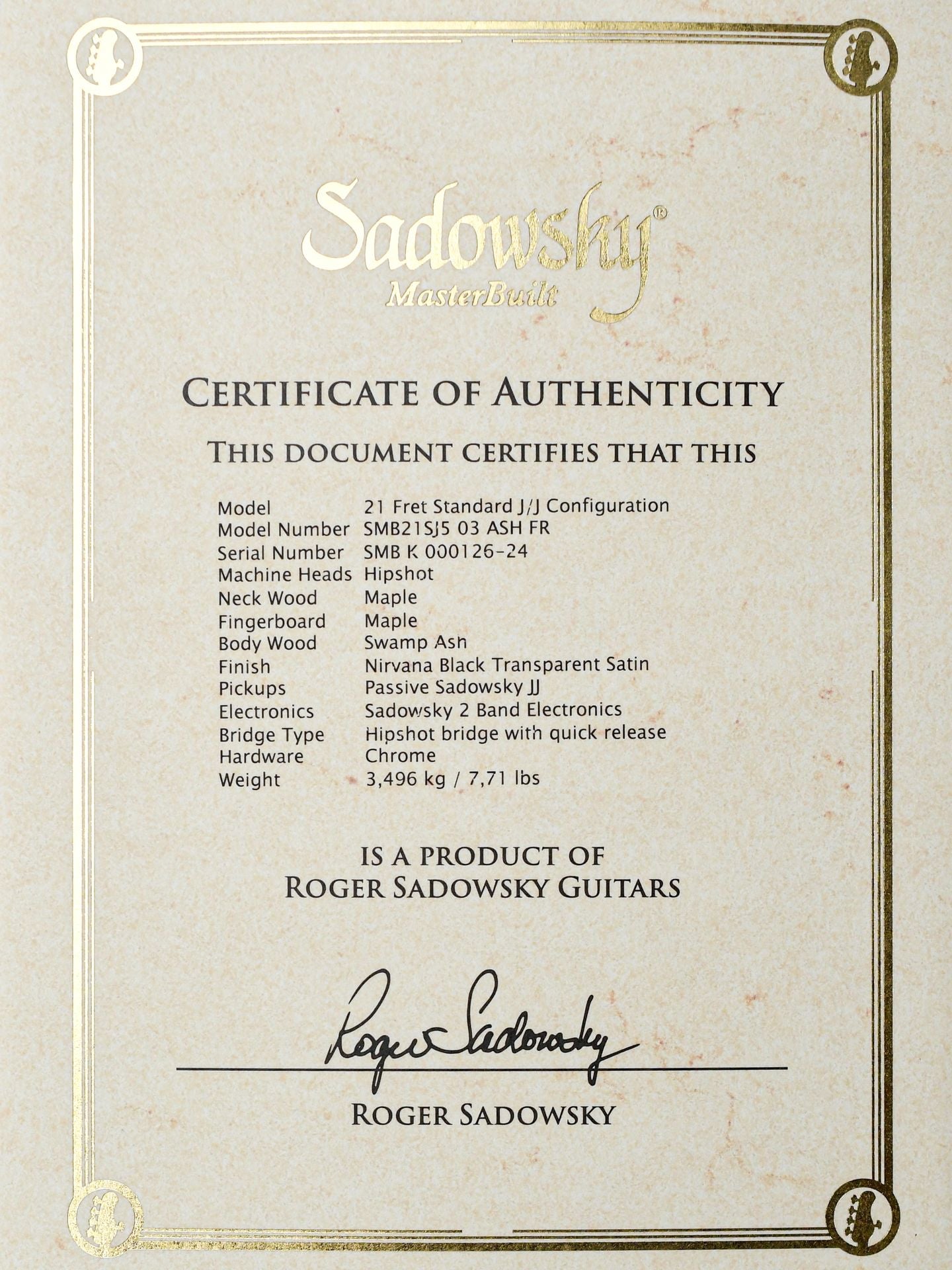 Sadowsky Masterbuilt instruments are, according to Roger himself, ‘as close as possible’ to the high-end instruments he builds in his New York City workshop.