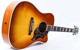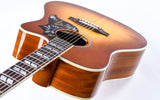 The Hummingbird’s mahogany neck has a comfortable Rounded profile and pearloid parallelogram inlays. In addition to a Heritage Cherry Sunburst finish, this ‘bird’ also features Grover Rotomatic tuners, the iconic Hummingbird graphics on the pickguard and is equipped with LR Baggs VTC electronics, so it’s ready to plug in on stage or in the studio. The guitar comes in a hardshell case with a TFOA passport.