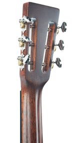 In terms of aesthetics, this 000-18 exudes understated class: black binding, black-and-white purfling, a tasteful rosette, and a tortoise pickguard create a classic look. The slotted headstock with rosewood overlay and the gold Martin logo complete the elegant appearance.