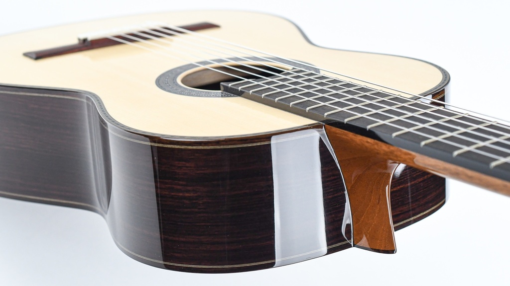Tradition meets innovation in every aspect of the Cordoba Torres. From the spruce top reinforced with Torres's iconic fan bracing structure to the Spanish cedar neck extending into the rosewood body, every detail is meticulously crafted to perfection. The nitrocellulose finish not only protects the wood but also allows it to breathe, preserving its natural resonance and character.