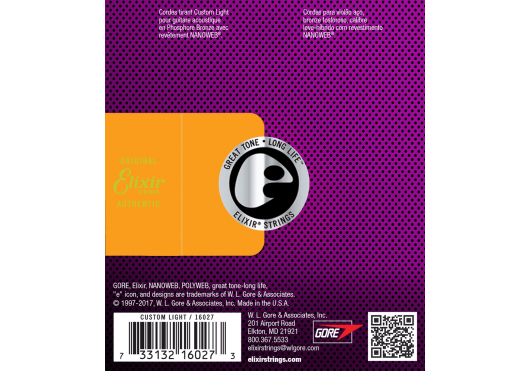 Elixir Strings Acoustic Phosphor Bronze with NANOWEB Coating deliver distinctive phosphor bronze warmth and sparkle together with extended tone life.