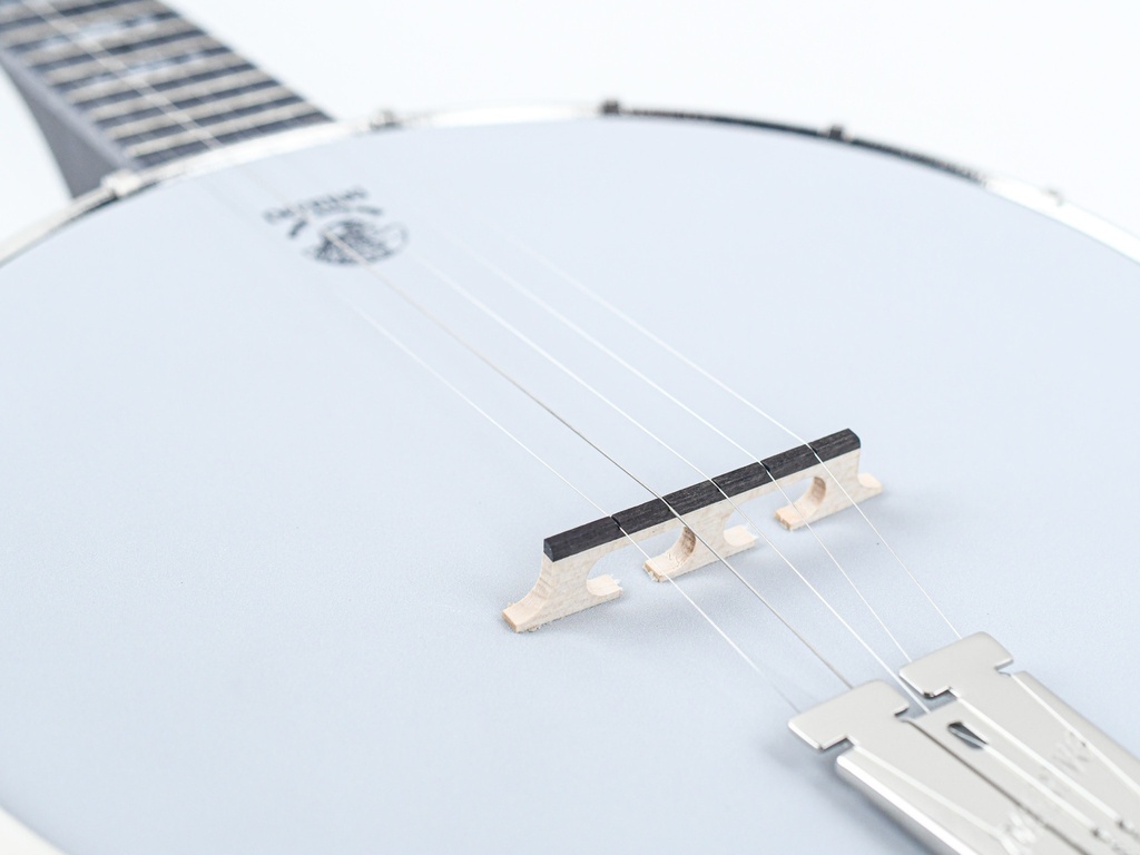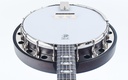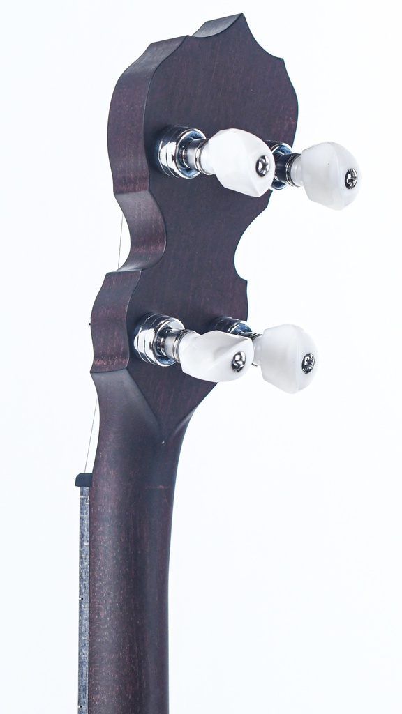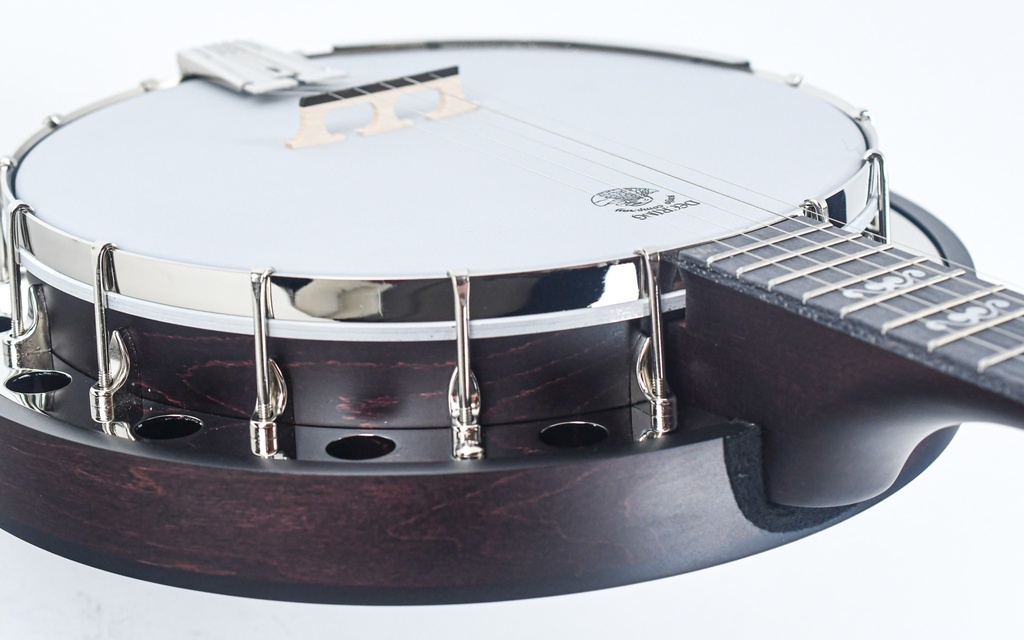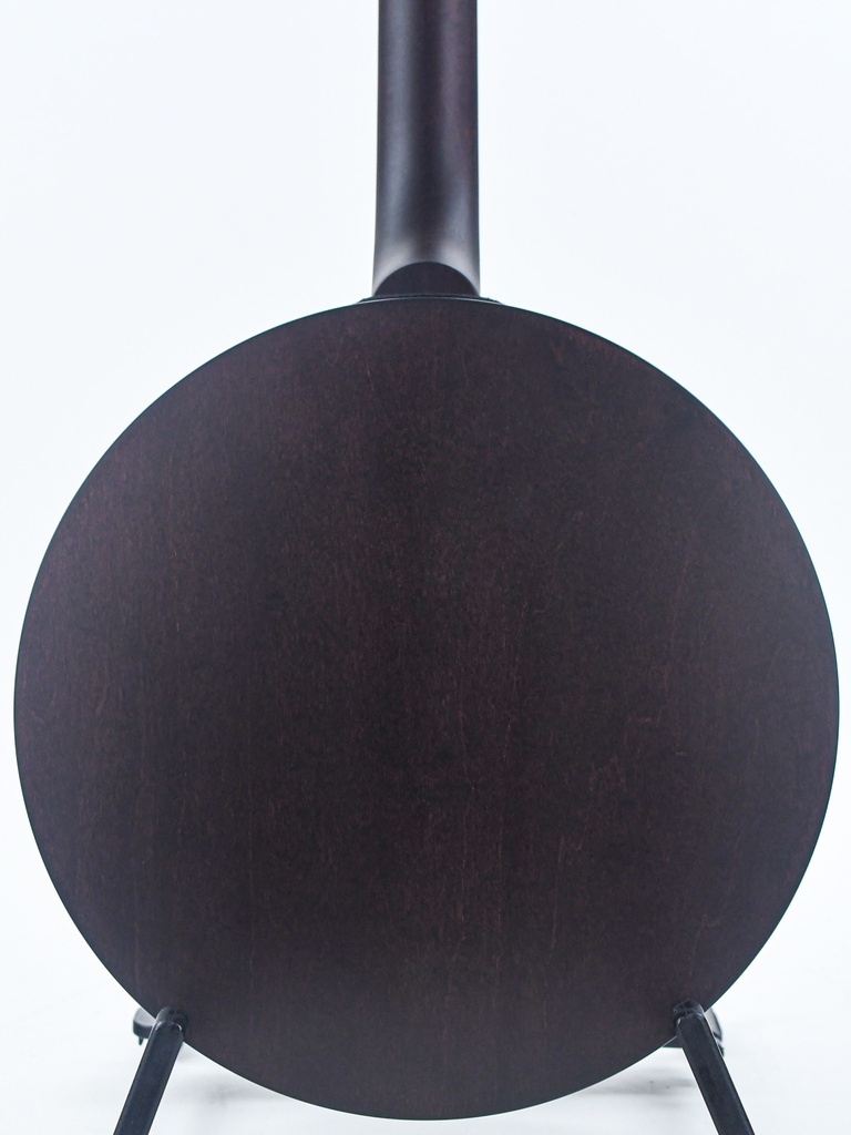 With a bluegrass resonator back for projection, the Artisan Goodtime Two banjo has a 3-ply violin grade maple rim and produces a bright and clear tone that projects well and is louder than its open back counterpart. The Artisan Two is enhanced with a rich brown stain, white detailing and spikes at 7, 9, and 10. The use of spikes enables you to expand your playing from the key of G to easily play in the keys of A, B, and C.