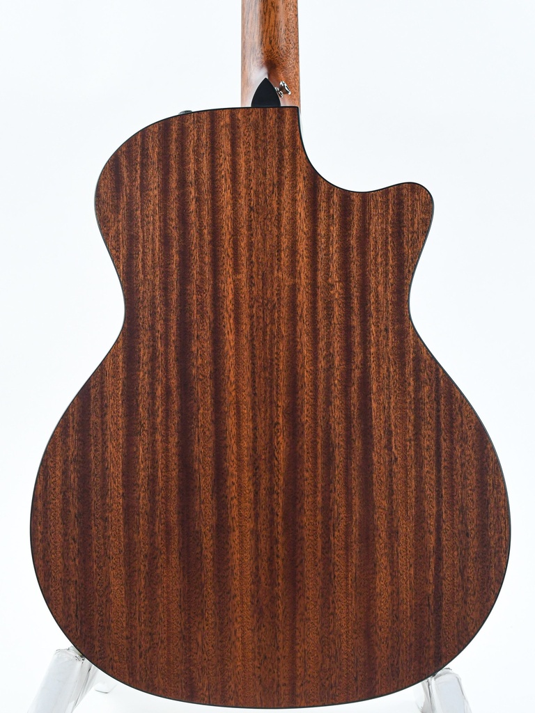 Featuring elegant touches such as black binding, Italian acrylic Gemstone fretboard and peghead inlays, and satin-finished back and sides with a glossy top, this guitar exudes sophistication. Additionally, a Venetian cutaway allows easy access to the upper frets, while Taylor's renowned ES2 electronics faithfully reproduce the guitar's acoustic character when amplified.