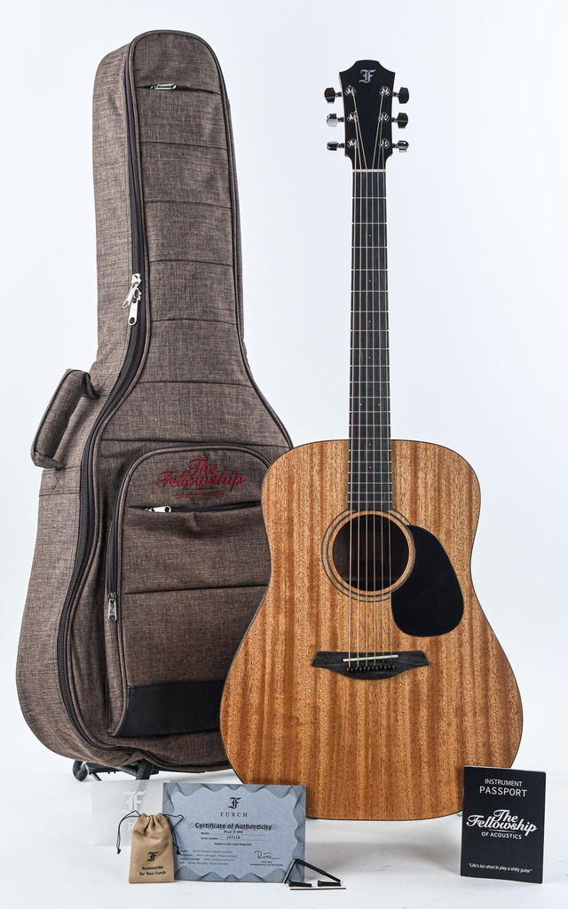 The Blue MM dreadnought’s soundboard is individually tuned according to Furch’s voicing process, this enhances the guitar’s tonal properieties to the highest level, resulting in a clear harmonical, balanced and dynamic tone spectrum. Comes with a TFOA padded gigbag.
