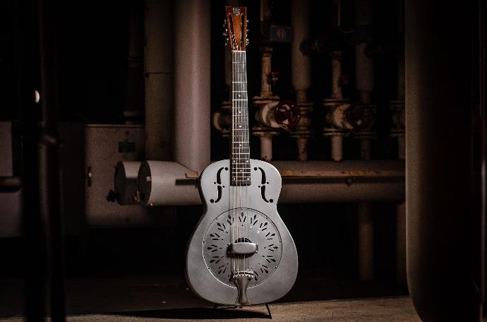 Resonators are a unique type of acoustic guitar. Unlike the Western guitar, the body of a resonator is made of metal. This gives resonators their very distinctive bite and sound. The vibration of the string passes through the bridge to one or more spun metal resonator cones, creating the unique sound. Resonator guitars are widely used in bluegrass music and blues.