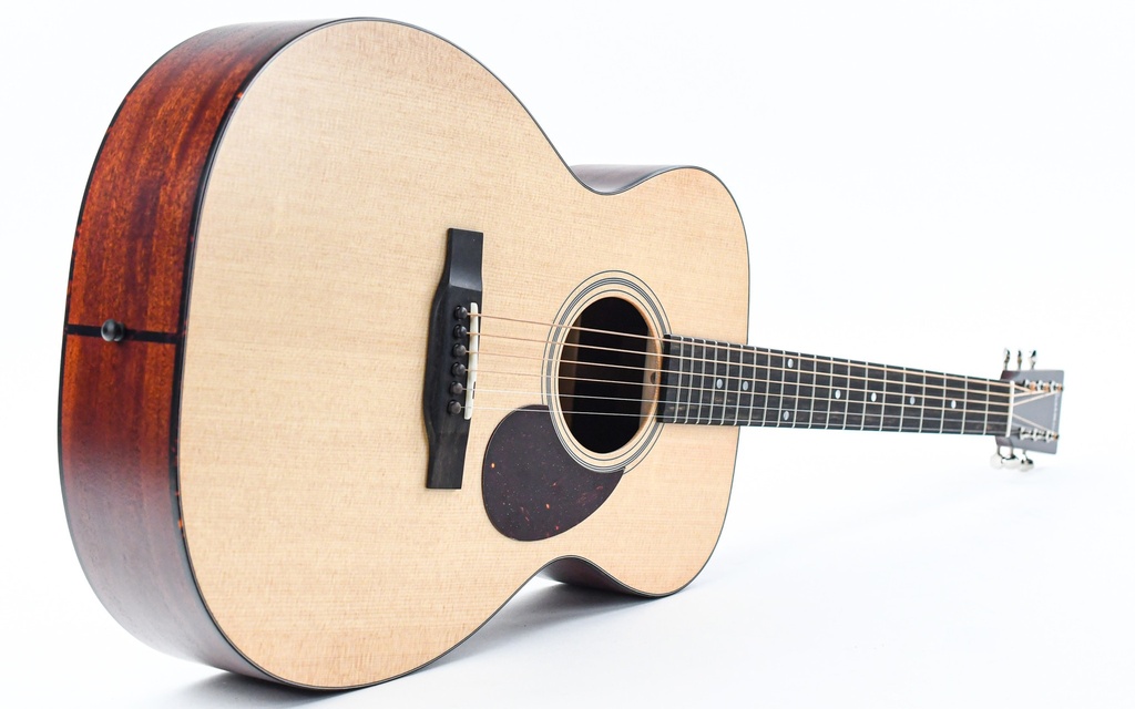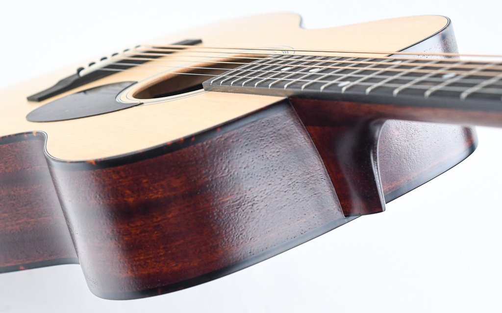 The E1 OM model is the perfect rendition of an Orchestra Model boasting a Sitka Spruce top on a Sapele body. What distinguishes this guitar it its solid wood construction, including the bridge and the fretboard. This contributes to the sound and will also ensure a more noticable maturation after many years of playing. The guitar also has Gloss Nitrocellulose lacquer, which allows the solid tonewoods to vibrate freely.