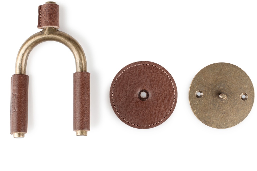 Die lederumwickelten Drehbügel sind aus massivem Stahl gefertigt und ermöglichen es jedem Aufhänger, das Instrument richtig zu wiegen, während der passende lederumwickelte Abstandshalter sicherstellt, dass die Gitarre weit genug von der Wand entfernt sitzt, um sowohl gerade als auch abgewinkelte Kopfplatten aufzunehmen. Eine passende Lederscheibe deckt die Montageplatte und die mitgelieferte Hardware ab und sorgt für eine saubere und stilvolle Präsentation.