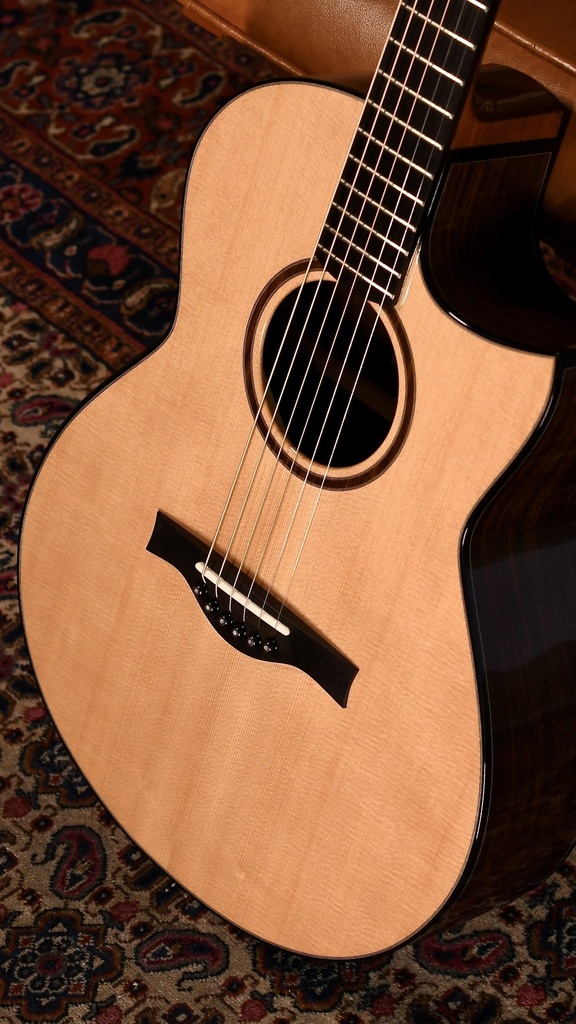 Das Modell Carrick ist etwas größer, mehr oder weniger vergleichbar mit einer OM und dank der reichen Obertöne ein Traum für Fingerpicker. Da Andrew Lowry sich in der Anzahl der Modelle beschränkt, kann er innerhalb dieser Modelle nahezu endlose Anpassungen vornehmen: die Wahl des Tonholzes, die Form des Halses, die Breite des Halses, die Lackierung, all das und vieles mehr wird nach sorgfältiger Beratung über Ihre persönlichen Wünsche entschieden.
