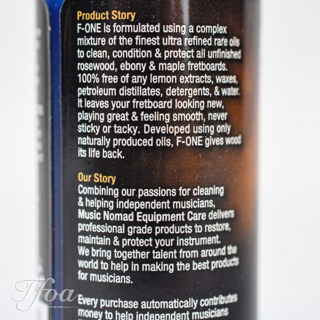 F-ONE gives wood its life back. F-ONE is formulated using a complex mixture of the finest ultra refined tree and seed oils to clean, condition & protect your fretboard/fingerboard.