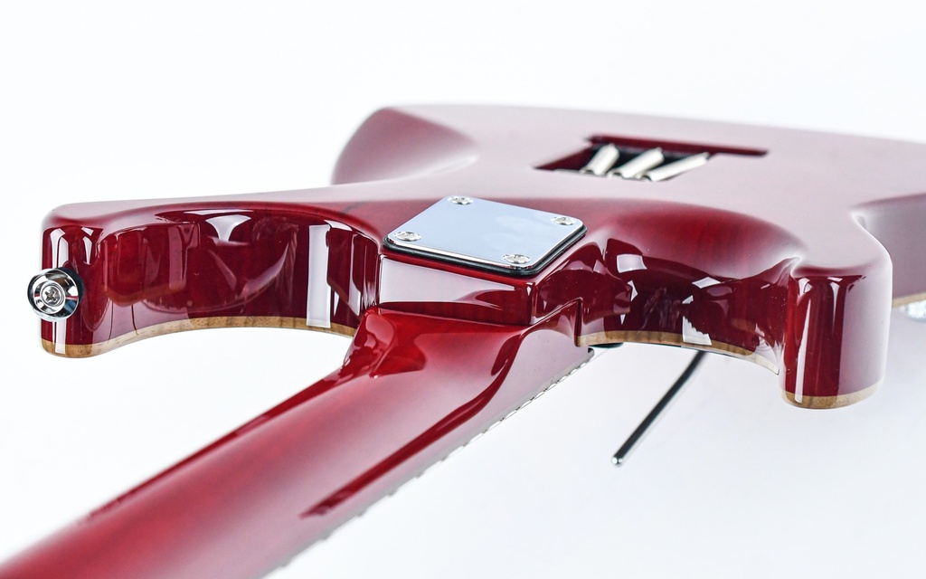 Auch dies ist ein Juwel des Meisters! Eines von Johns Lieblingshölzern, White Limba, ist das Herzstück seiner Signature Series Gitarre. Das Trans Red-Finish, das schön abgerundete Binding und das schwarze Bakelit-Pickguard sorgen für ein unverwechselbares und stilvolles Erscheinungsbild. Der weiße Limba-Korpus ist gekammert und mit Chrom-Hardware verziert, die den unbestreitbaren Achtziger-Jahre-Look vervollständigt.