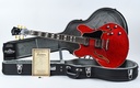 The cherry red finish is complemented by the ivoroid bindings and the split parallelograms to provide a classic look. It has a comfortable hand filling neck profile and a nice width which allows you to find each and every position on the ebony fretboard easily. Comes in a hardshell case including the certificate of authenticity.