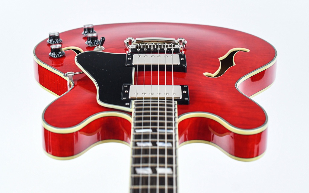 Diese halbakustische Gitarre besticht durch ihren hochwertigen, laminierten Ahornkorpus. Sie ist vielseitig, reaktionsschnell, klangstark und kraftvoll. Die Seymour Duncan Jazz und 59 Pickups liefern den unverwechselbaren Humbucker-Sound. Der Centerblock verhindert Rückkopplungen und verleiht der Gitarre einen Klang, der dem einer Solidbody-Gitarre ähnelt.