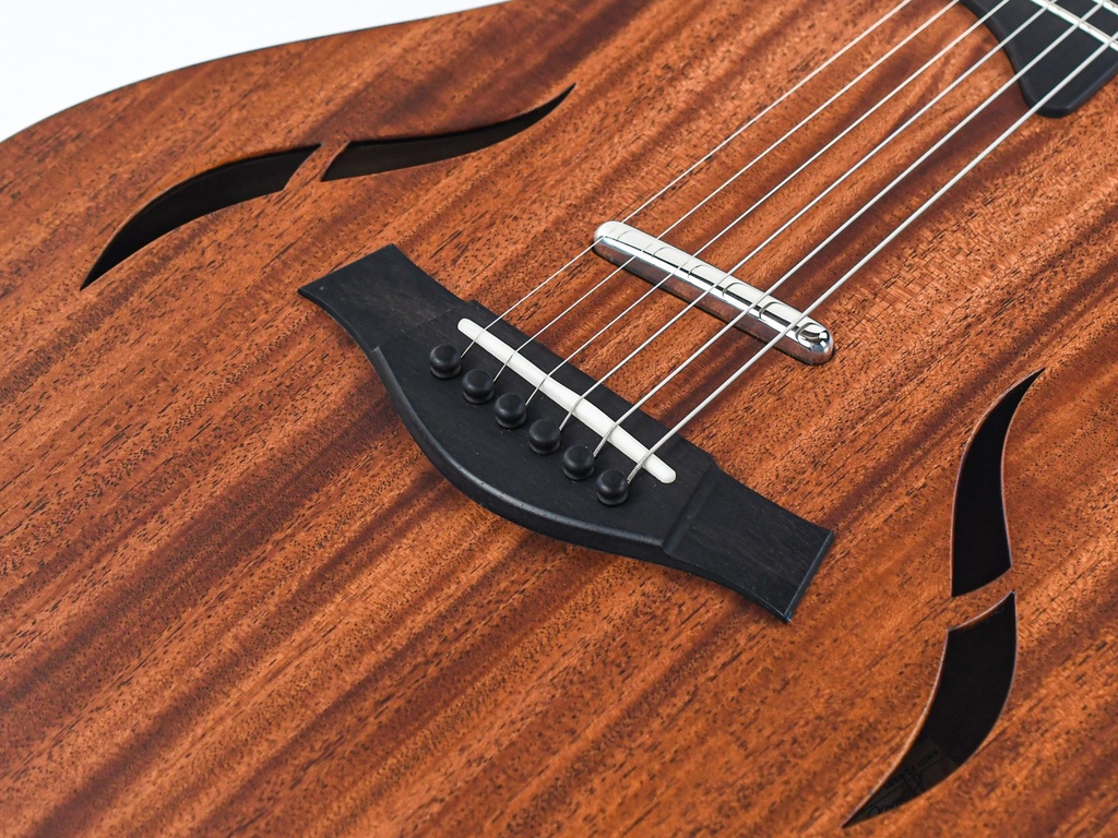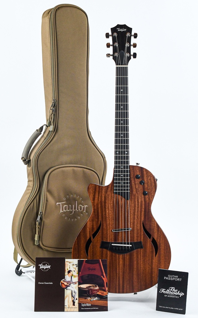 De hybride hollowbody T5z Classic loopt voorop in Taylor's innovatie op het gebied van gitaarontwerp en combineert het snelle gevoel en de verschroeiende leads van een elektrische gitaar met de warme klanken en natuurlijke boventonen van een akoestische gitaar.