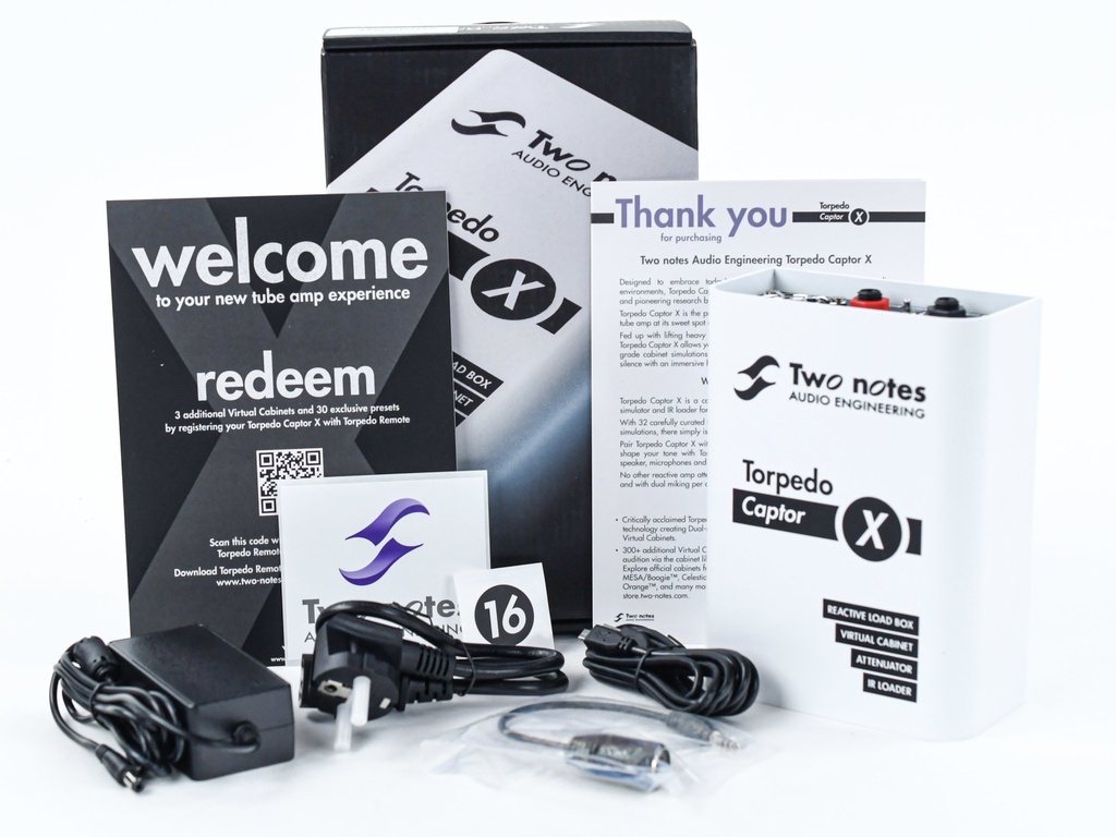 Two Notes Torpedo Captor X is a compact reactive load box, amp attenuator, virtual cabinet and IR charger for home, live and studio use.