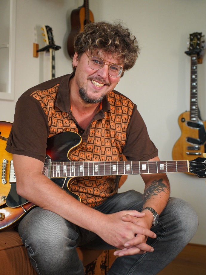 Fellow Berend zit heel erg op gitaarspelen. Kijk maar eens naar zijn Insta-pagina want daar zie je van alles voorbij vliegen: jazz op zijn Gibson ES 150 met de Fryske Big Band, snoeiharde solo’s op een zwarte Strat, een bossa novaatje op nylon en dampende funk op een Fristi-Roze gevalletje.