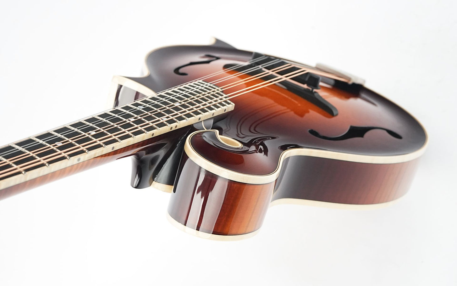 Het F-style model, met zijn kenmerkelijke scroll en punten, is geïnspireerd op de klassieke ontwerpen die al meer dan een eeuw de standaard vormen voor professionele mandolinisten. De Persephone-serie staat bekend om zijn uitgebalanceerde combinatie van projectie en speelcomfort.