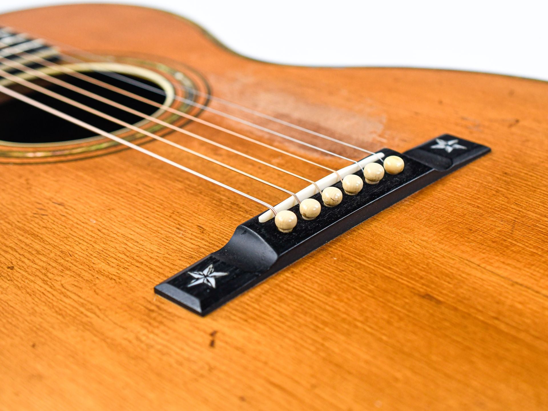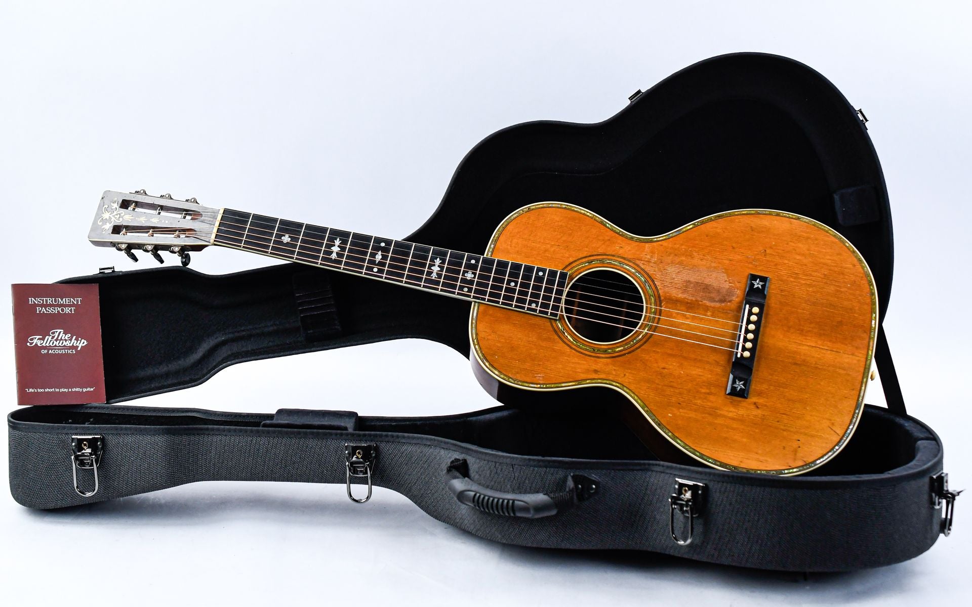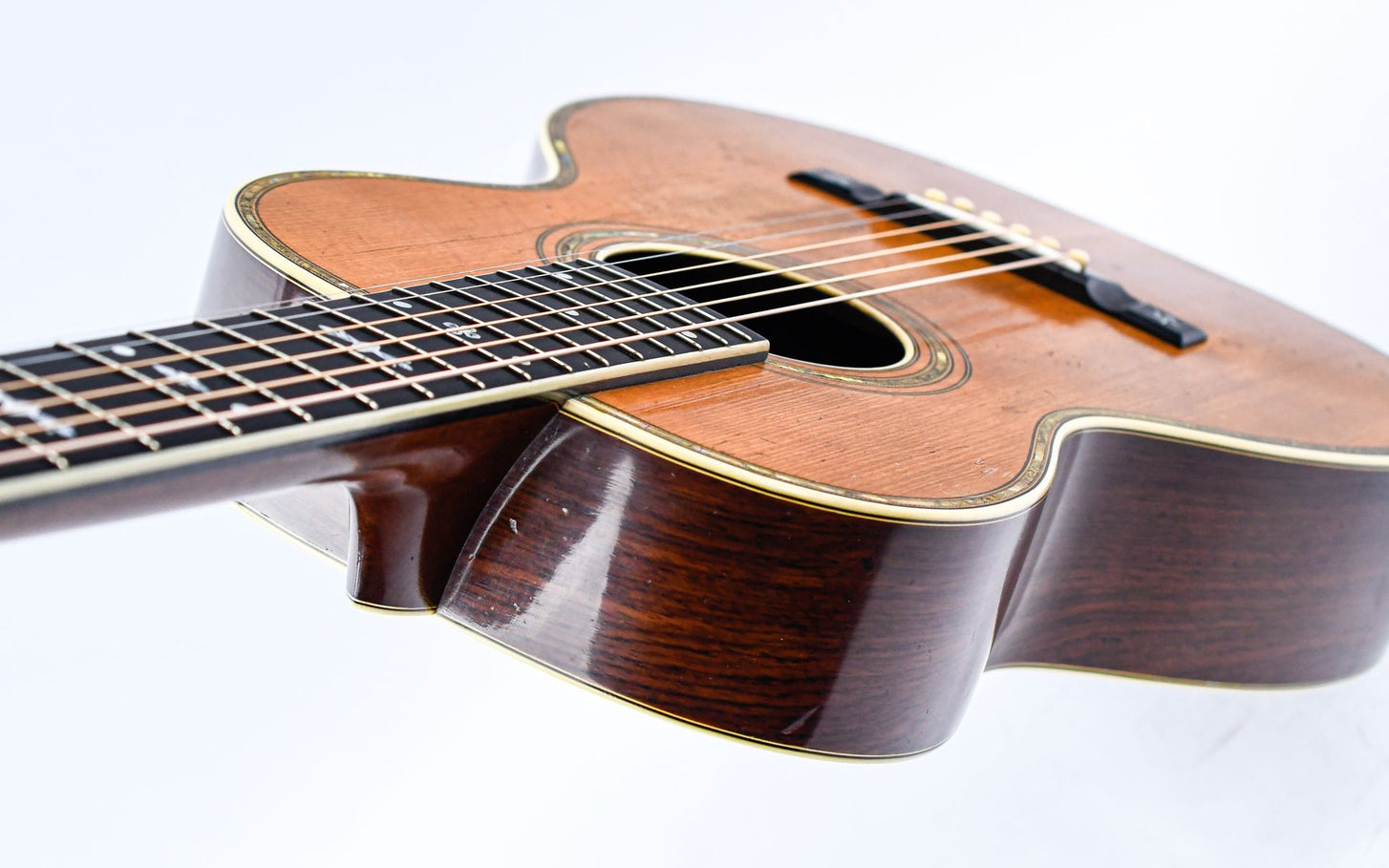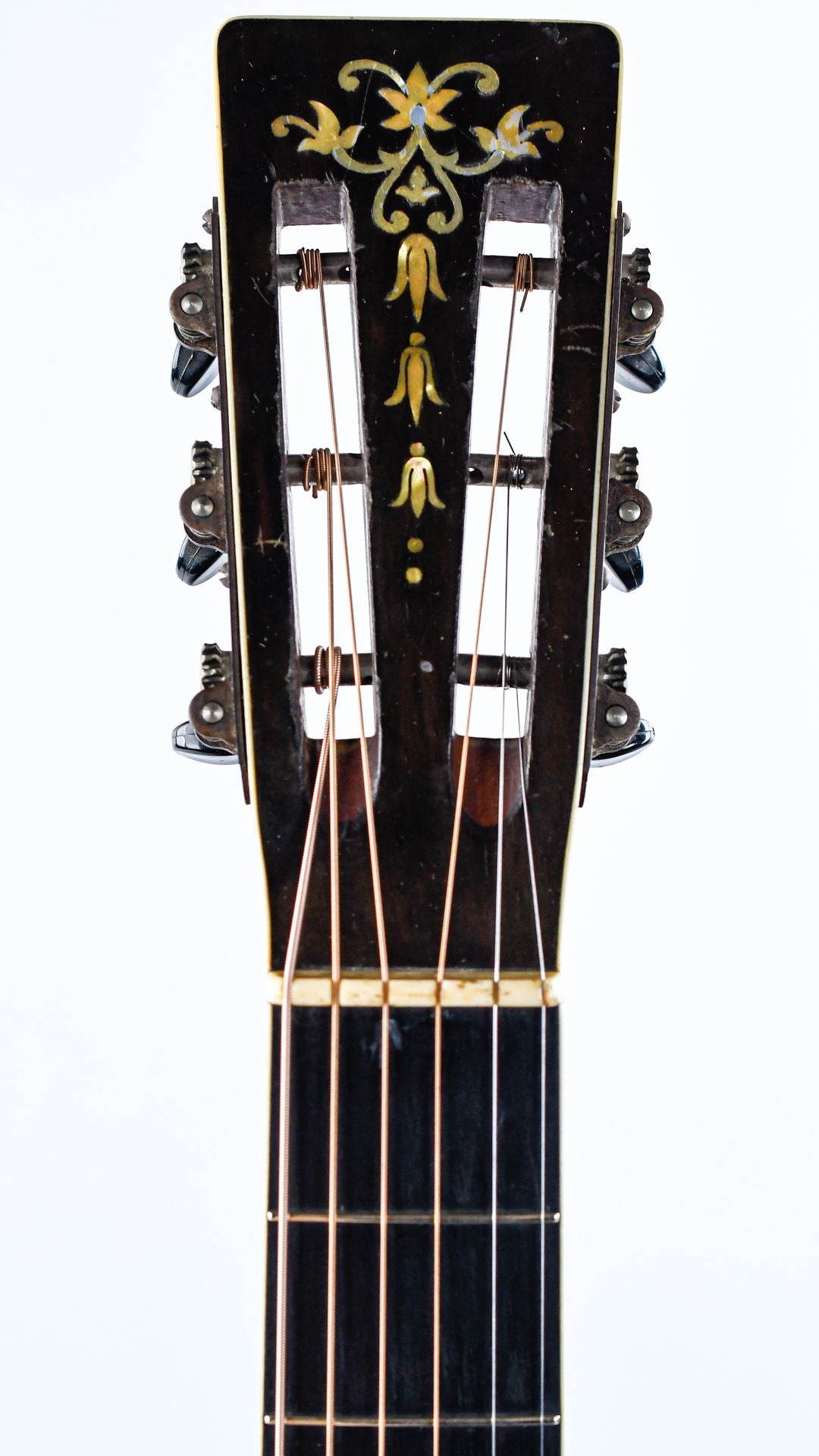 De gitaar heeft in zijn eeuw-lange bestaan het nodige meegemaakt, maar is met zorg behandeld en vakkundig onderhouden. Een gerepareerde crack op de bovenste bout, een kleine crack tussen brug en slagplaat, en een opnieuw gelijmde center seam zijn de tekenen van zijn rijke verleden. Verder zijn alleen het brugzadel en de stemmechanieken vervangen door periode correcte Grover exemplaren, terwijl alle originele details zoals de brug en finish intact zijn gebleven.