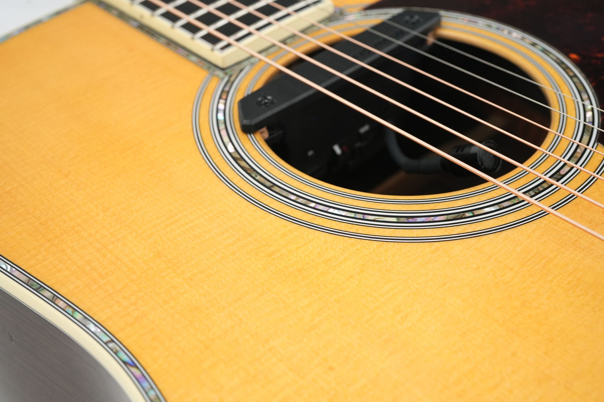 En nu we het toch over geluid hebben; deze gitaar heeft het geluid dat je zou verwachten van een topkwaliteit dreadnought; extreem krachtig, blijft helder en briljant zelfs op de hogere posities. Dit is niet simpelweg een D28 met meer inleg, maar een gitaar van een heel ander niveau!
