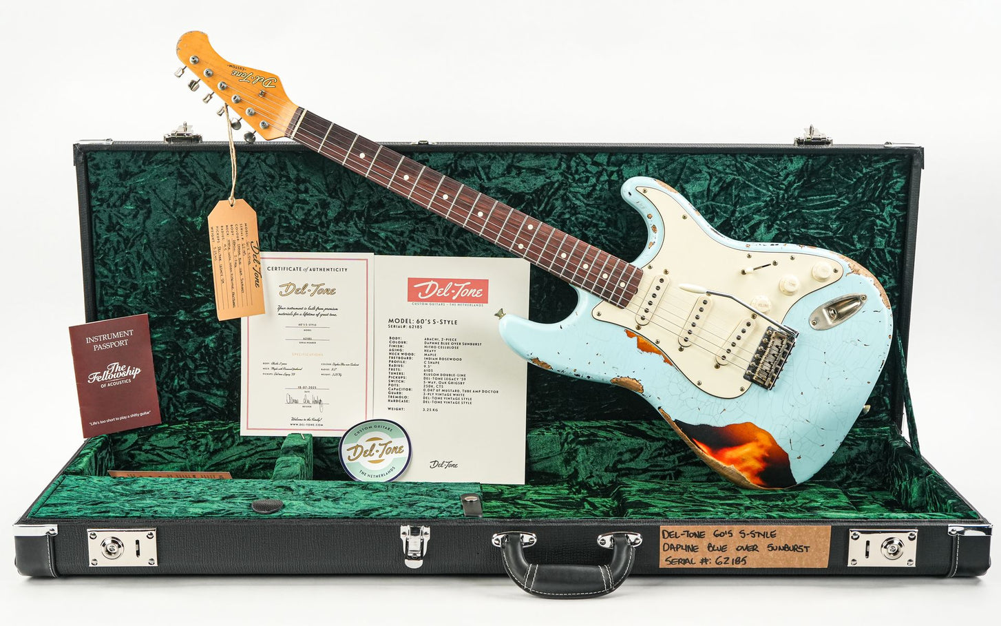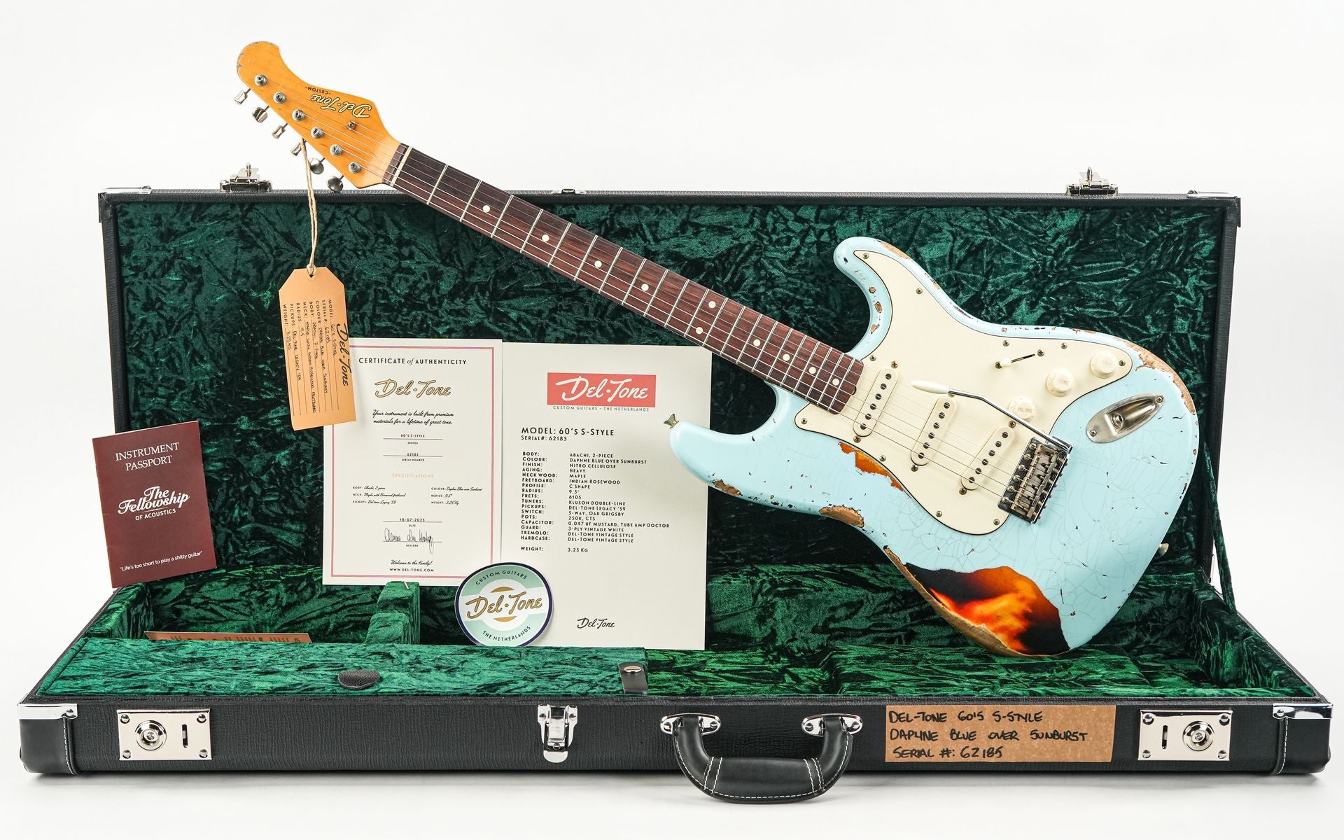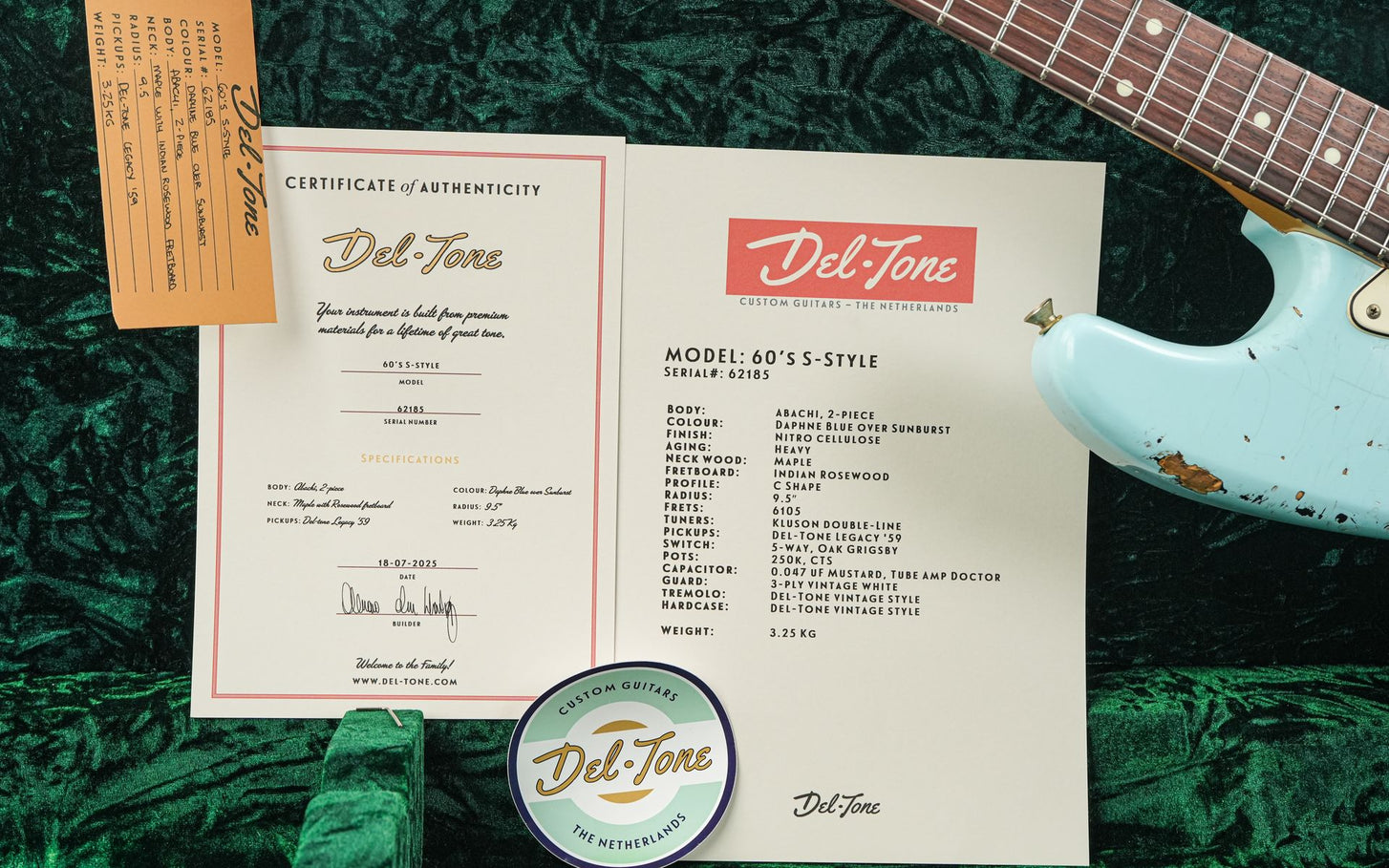 Del Tone also delivers on the sound! The guitar is equipped with Del Tone Legacy '59 pickups. These pickups are meticulously handcrafted one by one in the same workshop as the guitars, ensuring that each pickup receives the same level of attention to detail and craftsmanship as the instrument it's installed in, creating a seamless connection between that wonderful acoustic resonance and its single coils! It comes in a hardshell case with a certificate of authenticity.