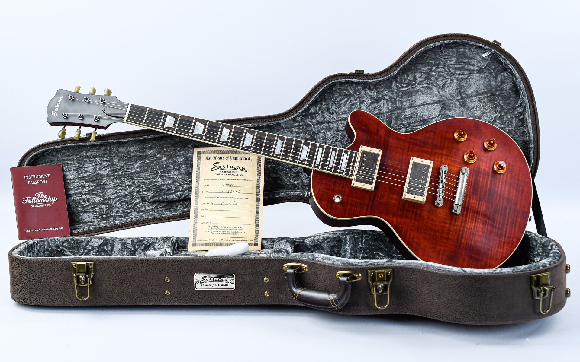 The Truetone finish is based on the same high-quality formula used on Bourgeois Guitars, a proud member of the Eastman family since 2019. It comes in a luxury hardshell case and certificate of authenticity.