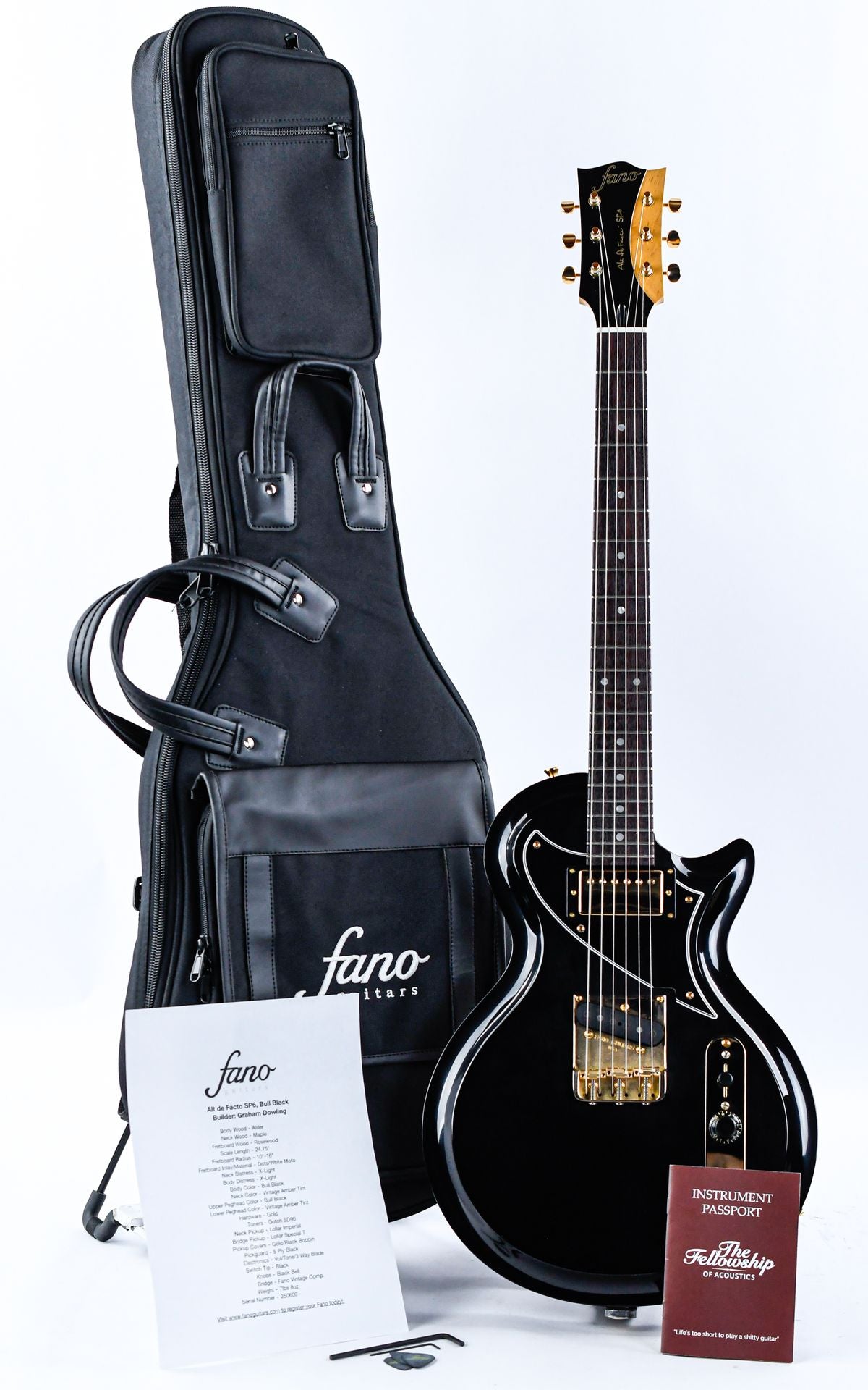 The Alt de Facto series guitars are the core of the Fano line-up, and are only available through authorized Fano Dealers such as The Fellowship of Acoustics. They are hand-built in Phoenix, Arizona by one of the talented builders on the Fano team, and are completely customizable; pickups, color and finish style, wood types, hardware, every conceivable option is possible. This makes every Fano a completely unique guitar!
