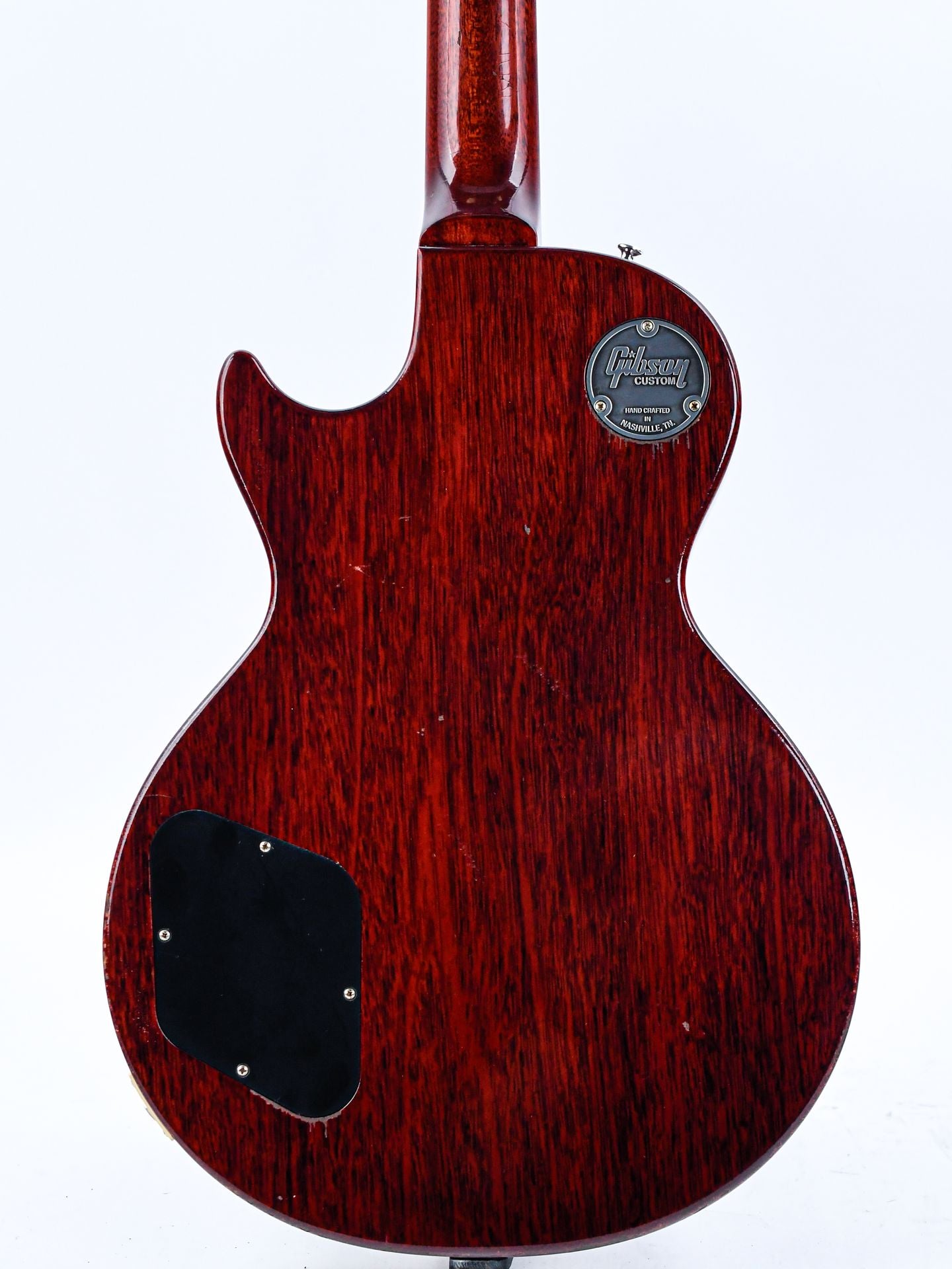 One of the distinctive features of Jeff Beck’s '59 Les Paul Standard is the double Classic White pickup bobbins on the Patent Applied For humbuckers. These have been faithfully recreated with unpotted Custombucker pickups, delivering the vintage tone and response that Beck’s guitar is known for. The single-ply black pickguard, another rare feature for a 1959 Les Paul Standard, adds to the guitar’s unique aesthetic, making it instantly recognizable.
