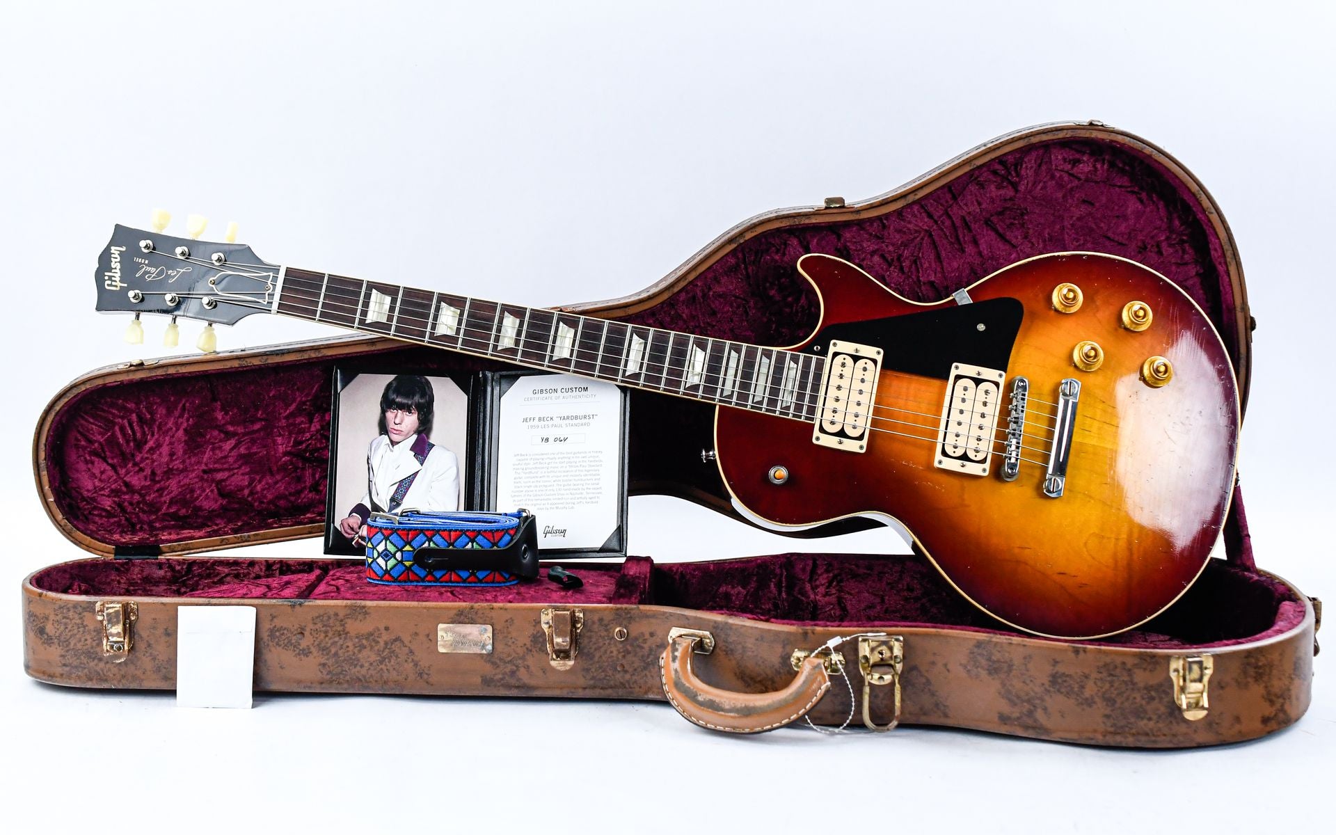 The artisans at the Murphy Lab have aged the Jeff Beck “YardBurst” to replicate the wear and character of the original guitar as it appeared during Beck’s time with the Yardbirds. This careful aging process gives the instrument a vintage feel and look, as if it had traveled through decades of musical history. This limited-edition guitar is a collector’s dream. Only 130 of these exceptional instruments were handmade by the expert luthiers at the Gibson Custom Shop in Nashville, Tennessee.
