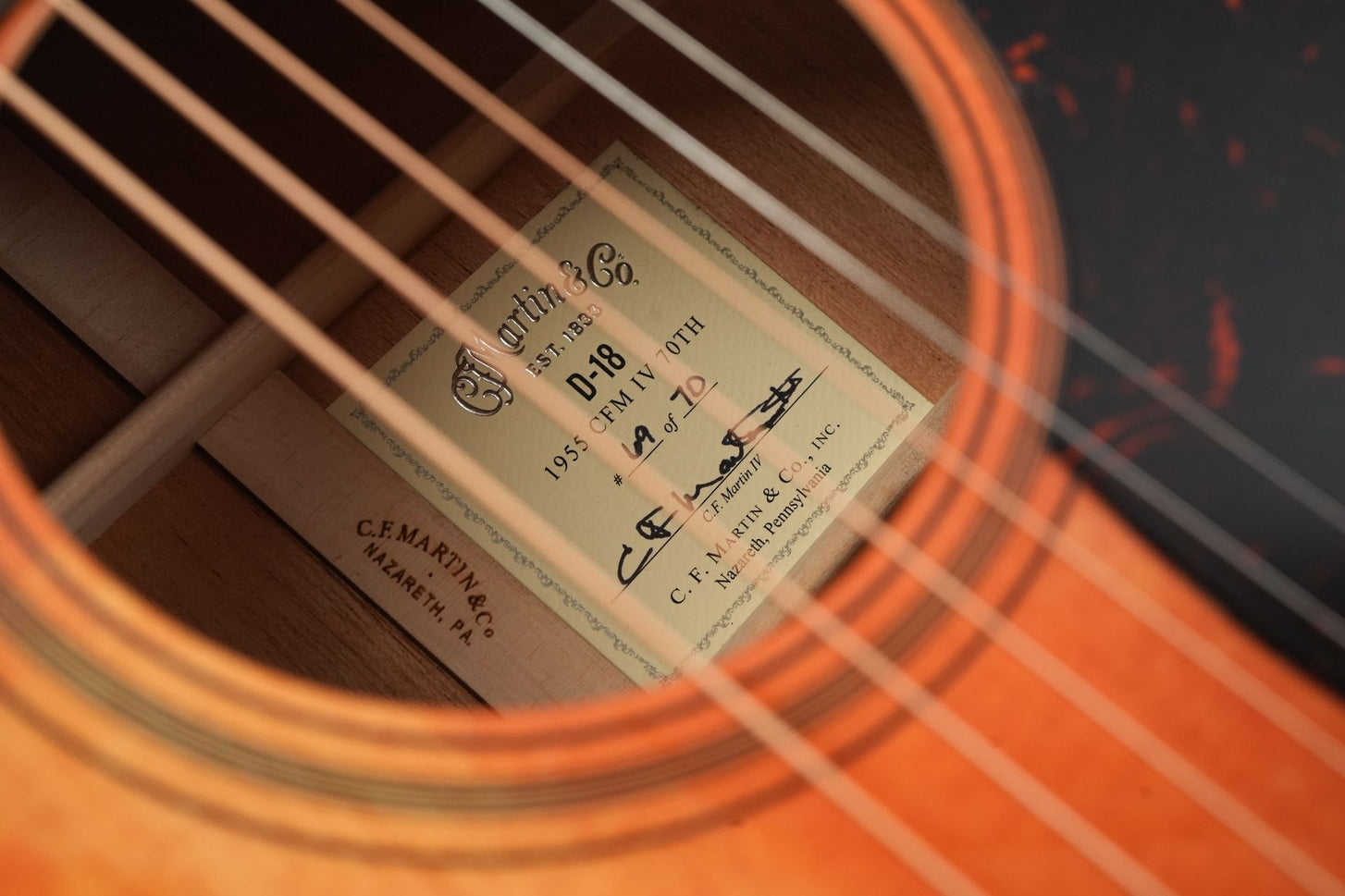 To celebrate Chris Martin IV's 70th birthday, Martin presents the D18 1955 CFM IV 70th, based on an original 1955 D18 recently acquired at auction. This guitar, serial number 144636, was part of Skip Maggiora's legendary collection and bears the marks of a richly played life. 1955 was not only a pivotal year for the Martin family but also the beginning of the folk revival that forever changed American music.