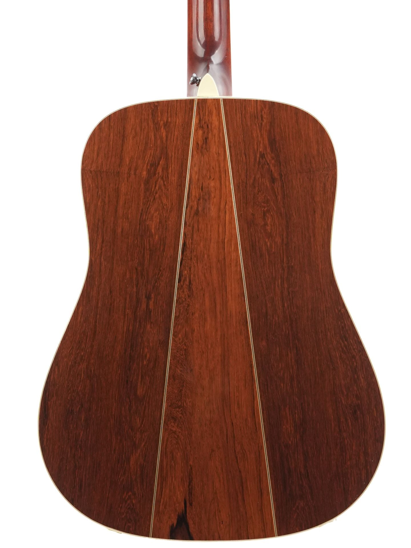 The design was originally created for a practical reason: it allowed for the use of smaller rosewood pieces that couldn't be used for the two-piece backs of the D28 or D45. What began as a practical solution evolved into a distinctive model with its own unique character.